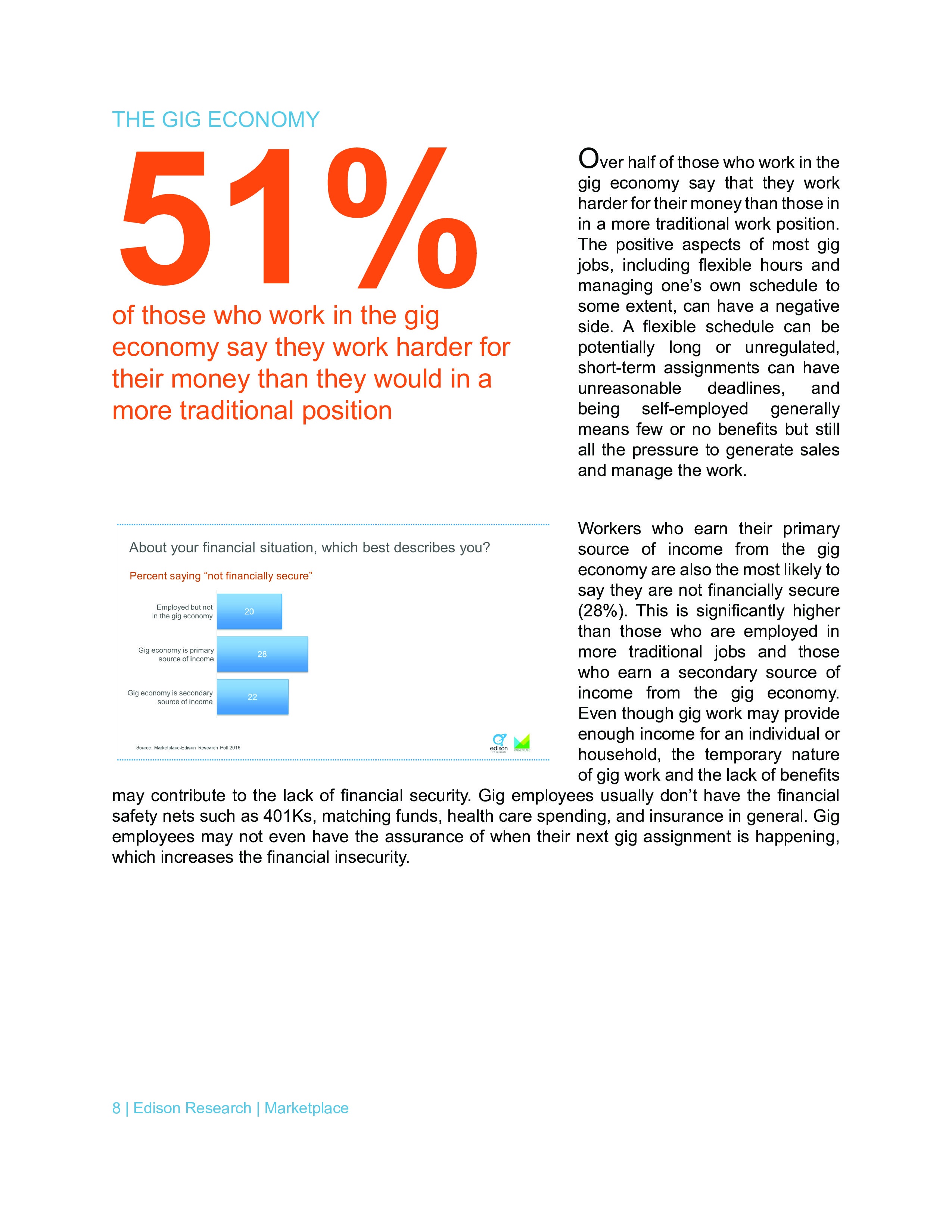 51%的零工经济工作者认为他们比从事传统工作的人更努力。
