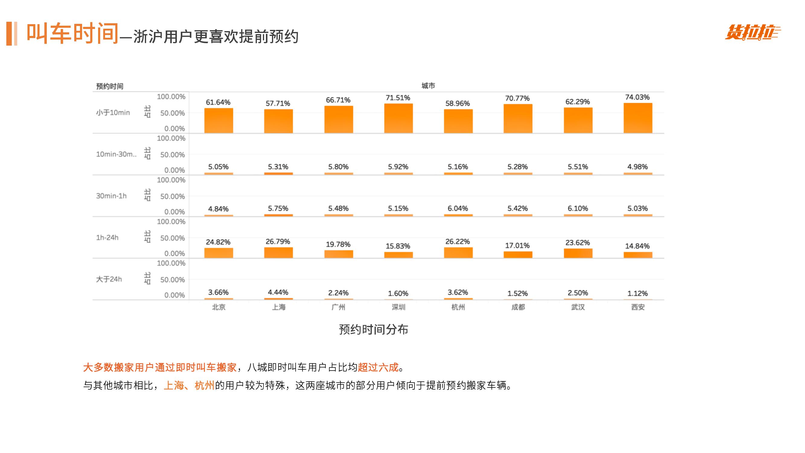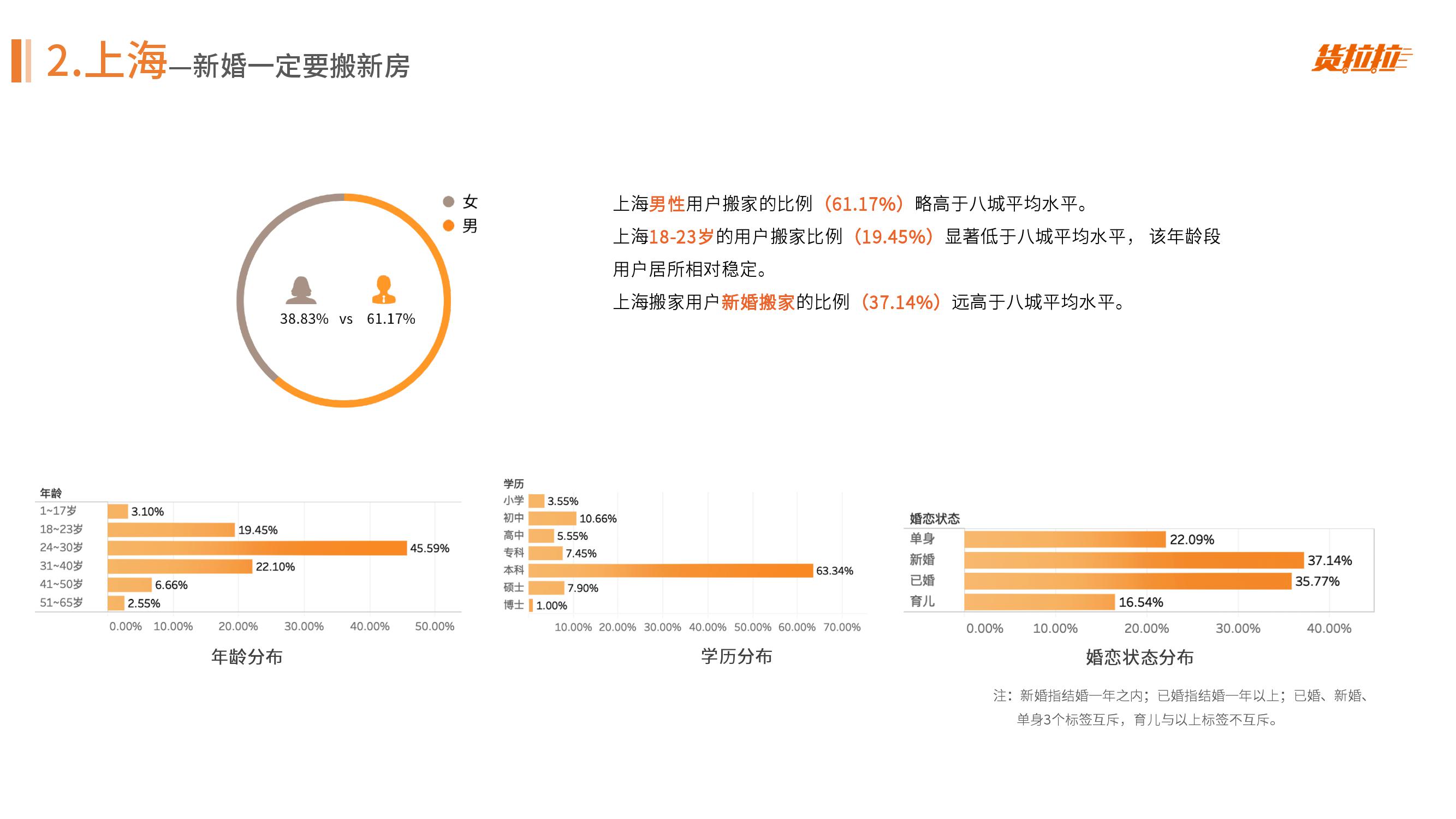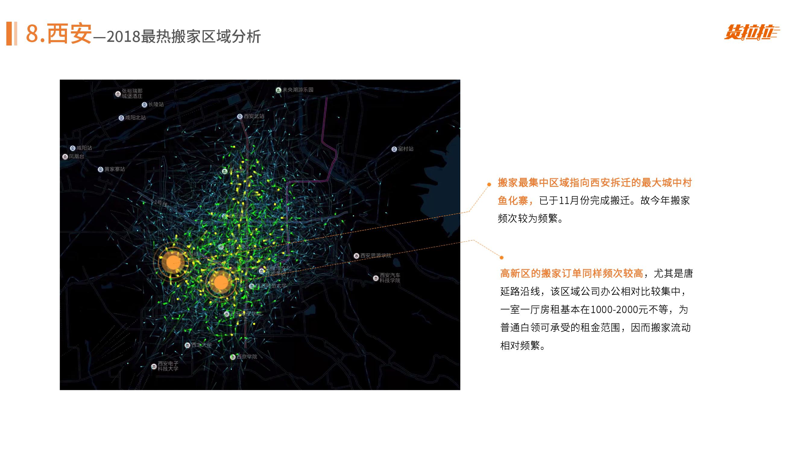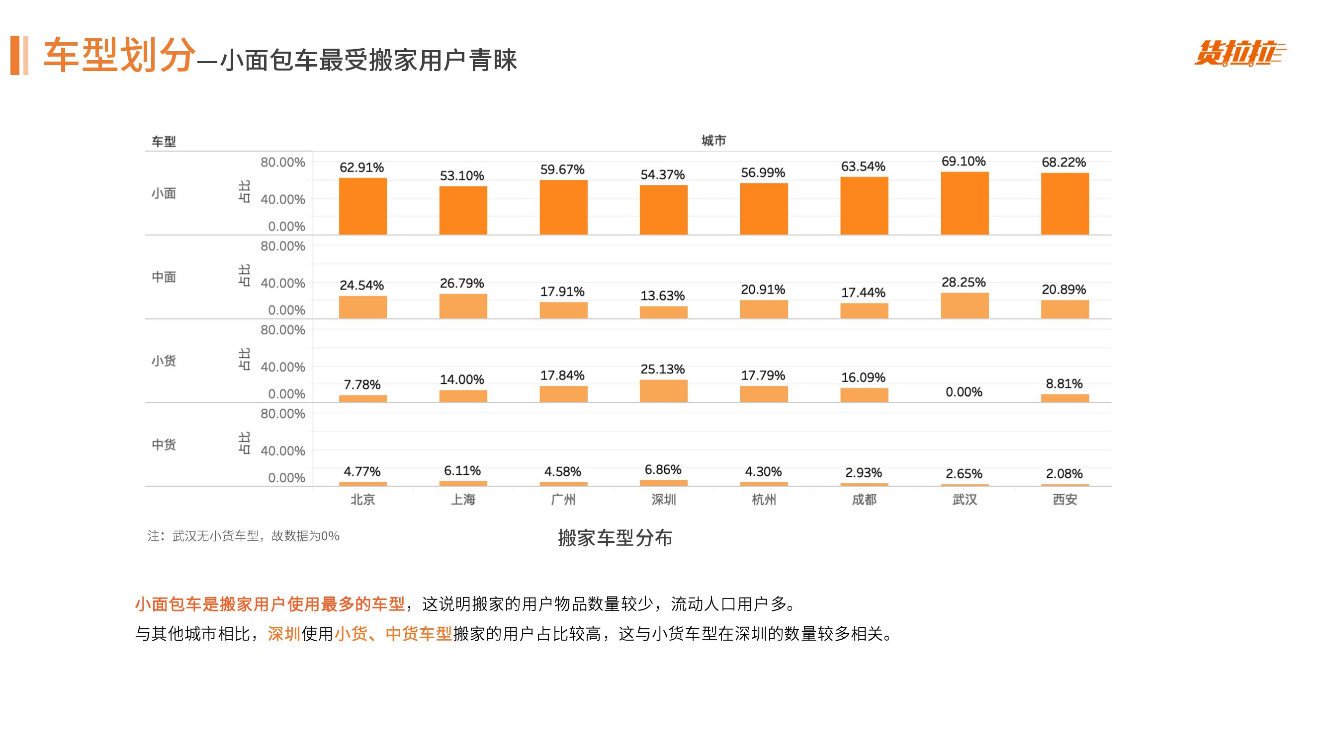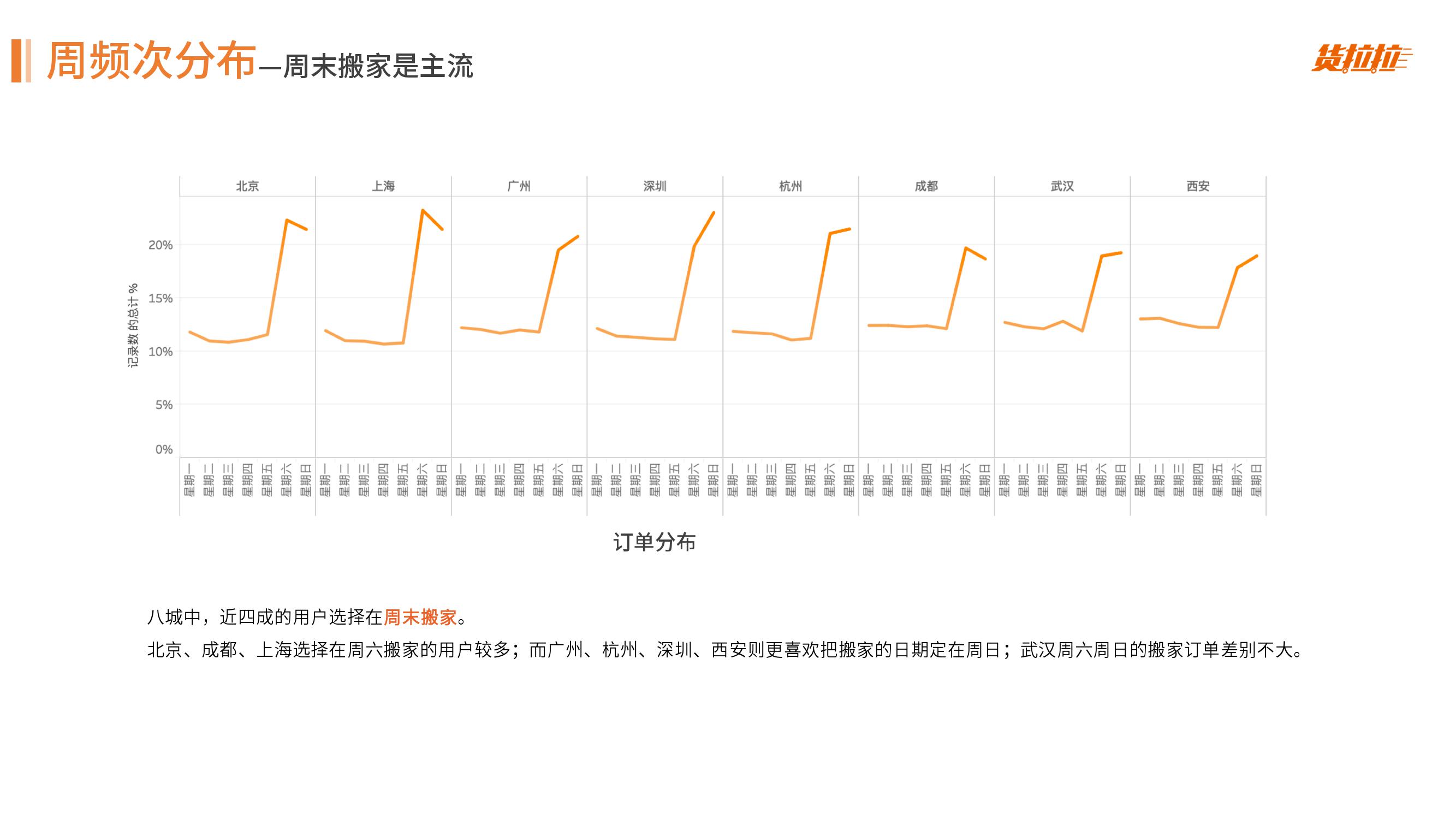 搬家已成为流动人口生活中必不可少的大动作之一。作为同城货运行业的头部企业,货拉拉发布了《2018年搬家大数据报告》,报告以北京、上海、广州、深圳、杭州、成都、武汉、西安8个城市的搬家数据为基准,展示了中国具有代表性的一、二线城市搬家趋势及分布规律。