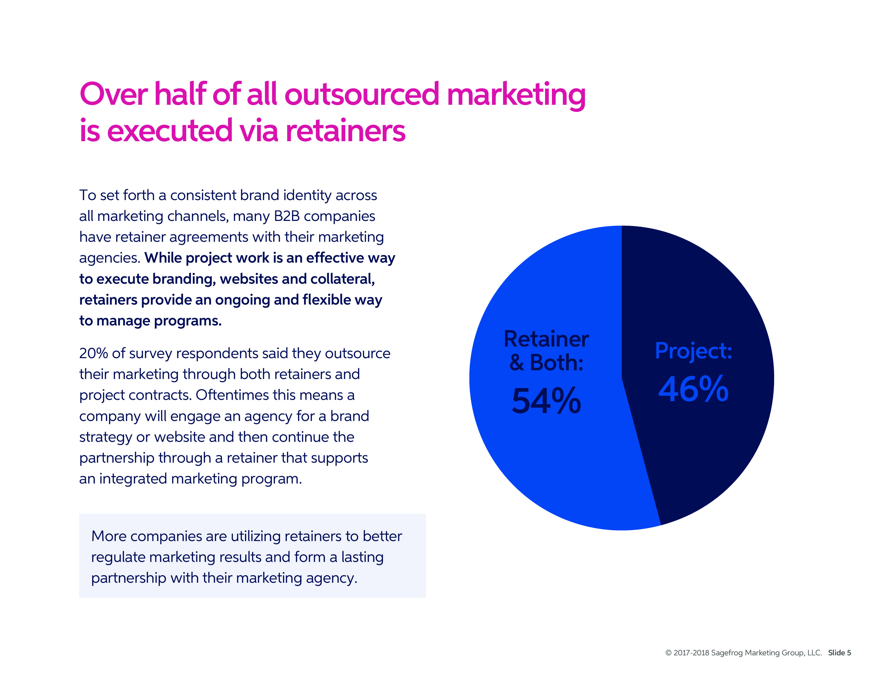 超过半数外包营销采用保留协议(Retainer agreement)