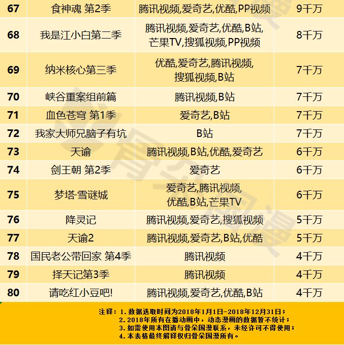 今天,骨朵国漫(ID:guduoguoman)将把《2018年上新动画总播放量》《2018年所有动画播放量TOP80》以及《2016-2018年上新动画播放量整体表现对比》分享给大家。
