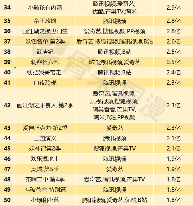 其中,漫改作品《万界仙踪》《武庚纪 第二季》《西行纪》表现突出,而《非人哉》作为播放量最高的日常搞笑作品,其取得成绩也是非常不错的。