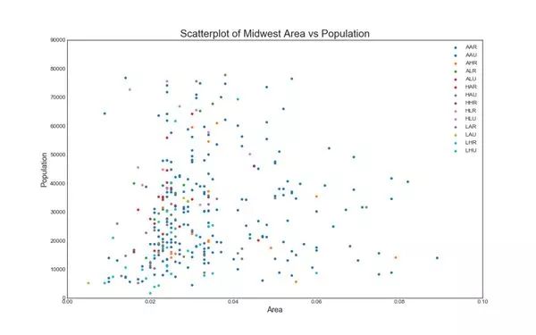 散点图是用于研究两个变量之间关系的经典的和基本的图表。 如果数据中有多个组,则可能需要以不同颜色可视化每个组。 在 matplotlib 中,您可以使用 plt.scatterplot() 方便地执行此操作。