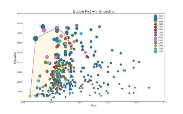 2. 带边界的气泡图(Bubble plot with Encircling)