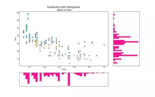 边缘直方图具有沿 X 和 Y 轴变量的直方图。 这用于可视化 X 和 Y 之间的关系以及单独的 X 和 Y 的单变量分布。 这种图经常用于探索性数据分析(EDA)。