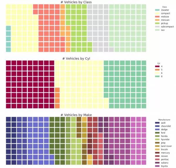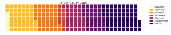 可以使用 pywaffle包 创建华夫饼图,并用于显示更大群体中的组的组成。