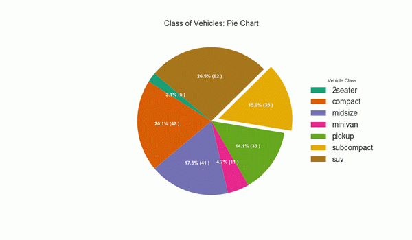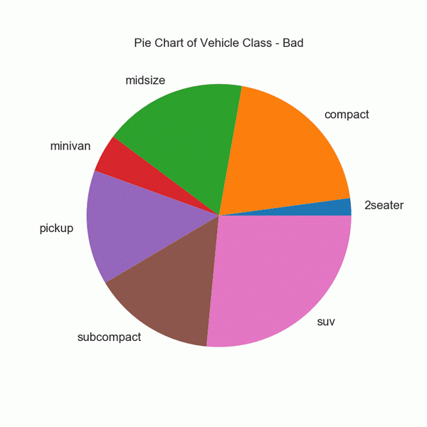 饼图是显示组成的经典方式。 然而,现在通常不建议使用它,因为馅饼部分的面积有时会变得误导。 因此,如果您要使用饼图,强烈建议明确记下饼图每个部分的百分比或数字。
