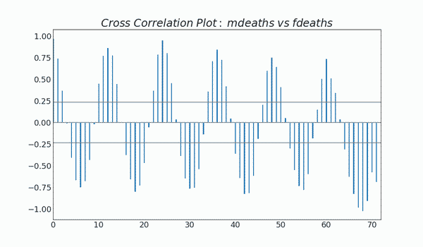 交叉相关图显示了两个时间序列相互之间的滞后。