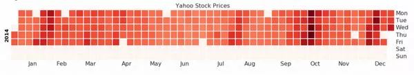 与时间序列相比,日历地图是可视化基于时间的数据的备选和不太优选的选项。 虽然可以在视觉上吸引人,但数值并不十分明显。 然而,它可以很好地描绘极端值和假日效果。