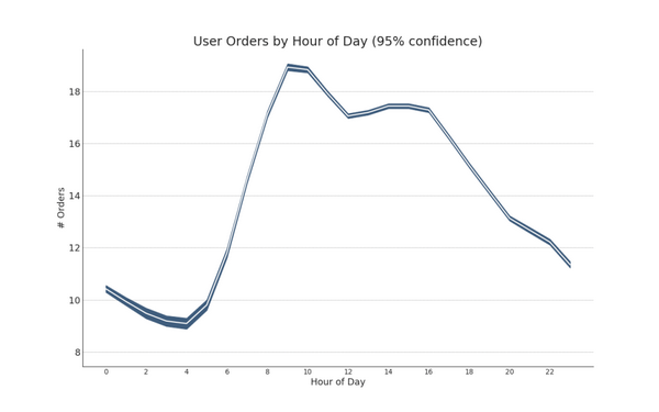在该方法中,订单数量的平均值由白线表示。 并且计算95%置信区间并围绕均值绘制。