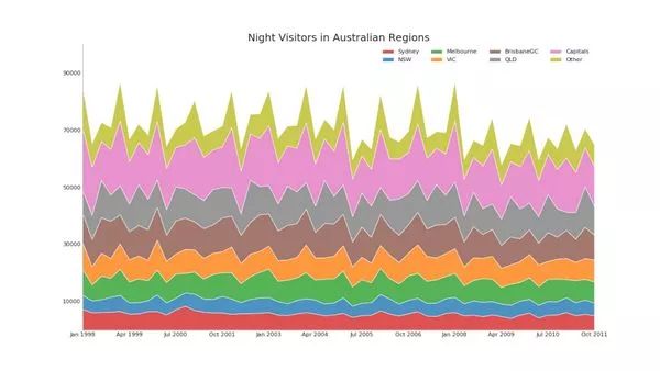 堆积面积图可以直观地显示多个时间序列的贡献程度,因此很容易相互比较。