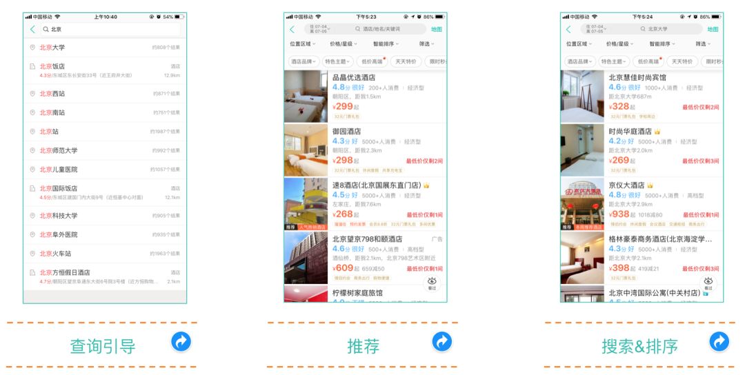 排序模块使用机器学习和深度学习的技术提供“千人千面”的排序结果,如果是经常预定经济连锁型酒店的用户,排序模块就把经济连锁型酒店排到前面。针对消费水平比较高,对酒店要求比较高的用户,排序模块就把高档酒店排到前面,对每个用户都可以做到个性化定制。排序属于典型的技术驱动模块,优化目标是访购率,用这个技术指标驱动技术团队不断进行迭代和优化。