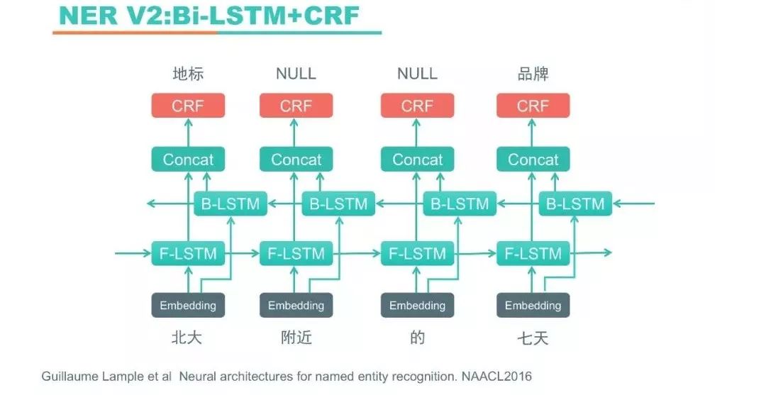 我们尝试了双向LSTM+CRF,并在实际应用中做了些改动:由于在CRF阶段已经积累了一批人工特征,实验发现把这些特征加上效果更好。加了人工特征的双向LSTM+CRF是酒店搜索NER问题的主模型。