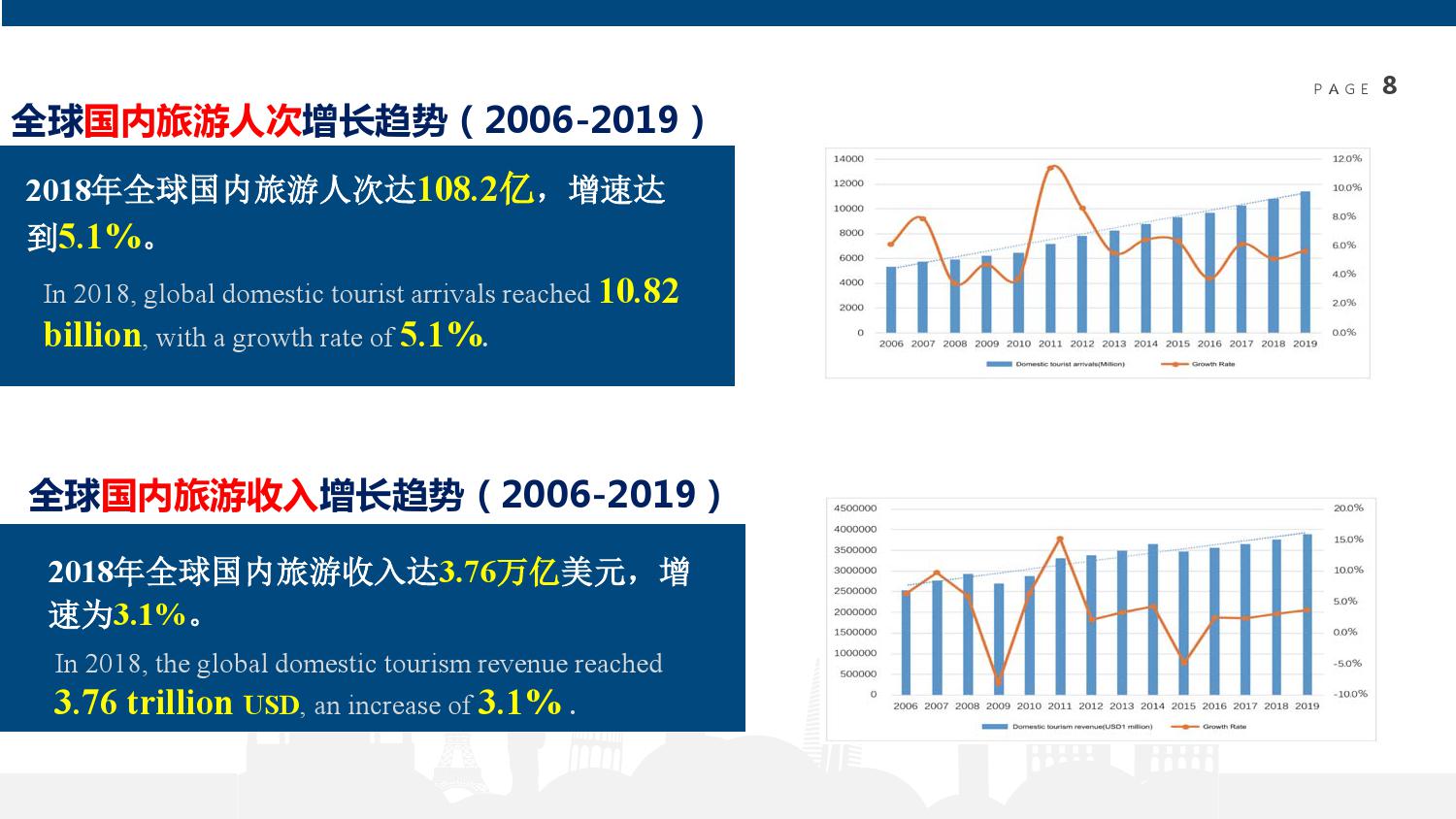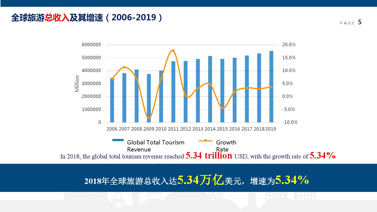 报告称,2018年,全球旅游总收入达5.34万亿美元,相当于全球GDP的6.1%,较上年下降0.4%。预计2019年全球旅游总人次将达到127.6亿人次,增速为5.5%,增速较2018年回升0.5个百分点,全球旅游总收入将达5.54万亿美元,相当于全球GDP的6%。