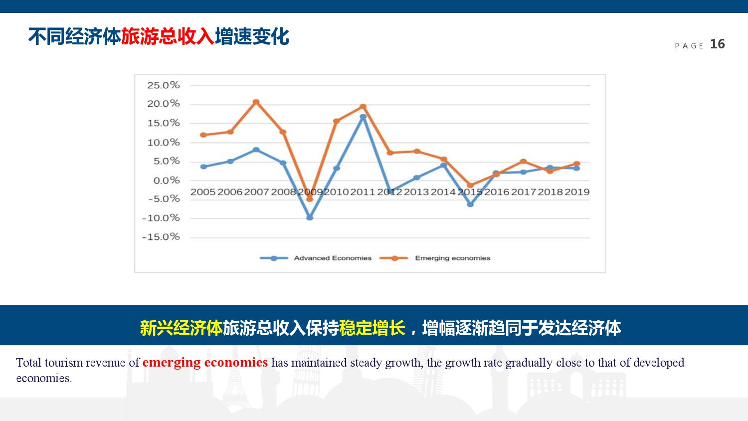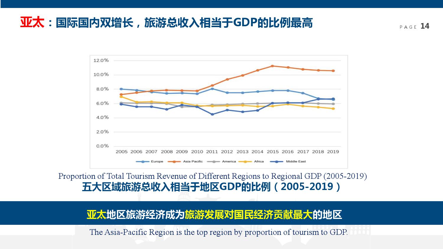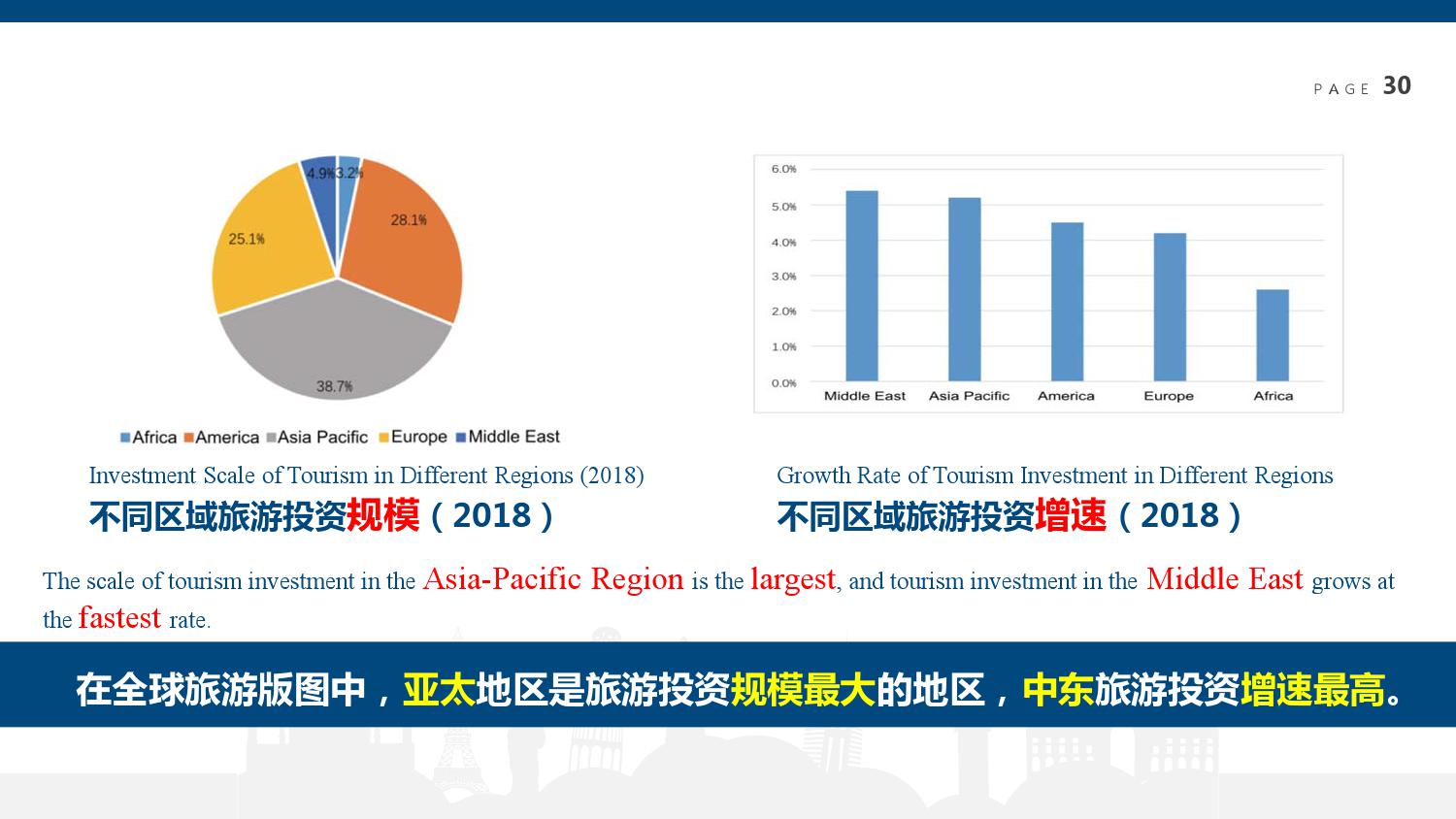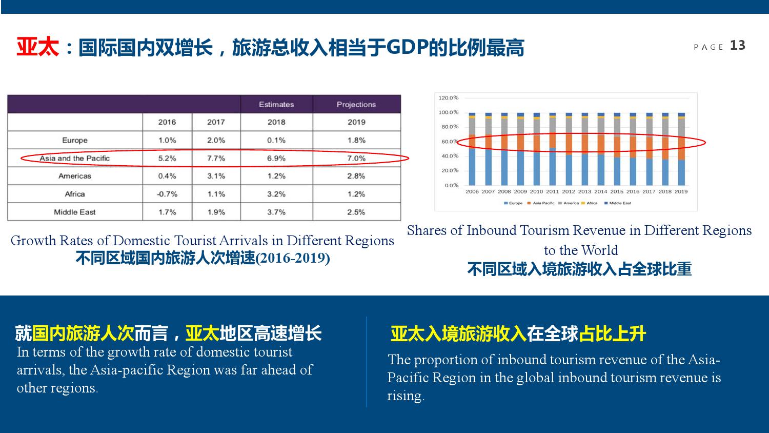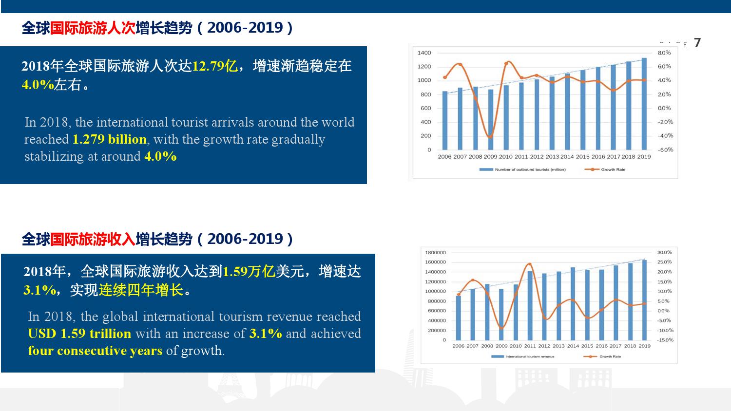 报告总结了以下七大特点:一是2019年全球经济增长趋缓,但旅游经济稳步上涨。二是全球五大区域旅游发展渐趋明显,亚洲增长、欧洲下滑。三是亚太旅游投资规模、增速均列各大洲前茅。四是创新性提出“T20”国家概念,T20国家创造全球旅游八成收益。五是支付手段变革助推旅游消费升级。城市仍是入境旅游者的主要目的地,95%的国际城市来自于亚太、欧洲和美洲;六是以虚拟技术、全产业链合作等为代表的6大营销创新打造旅游新体验。七是城市仍是入境旅游者的主要目的地。