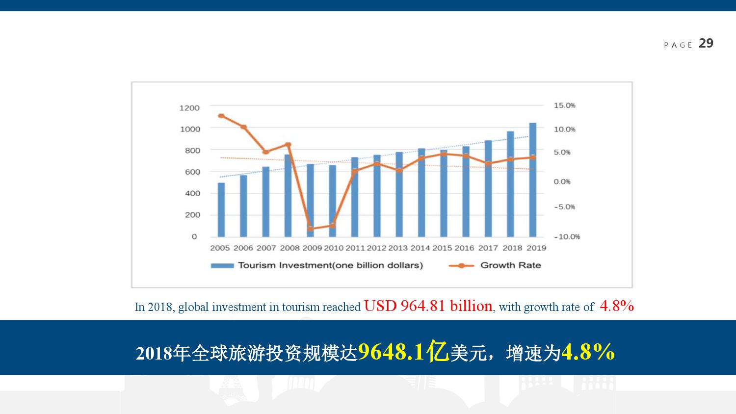 与之相对应的是,全球旅游投资理性攀升。2018年,全球旅游投资达9648亿美元。长期来看,全球旅游投资增速显著放缓,2005年为13.1%,2018年则回落到4.8%。