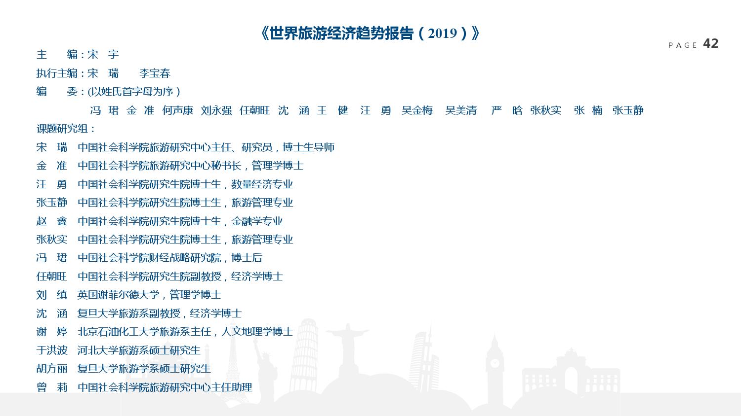 中国社会科学院财经战略研究院党委书记闫坤认为,旅游是文化交流、社会沟通和贸易流通的重要载体,也是连接世界、深化合作和促进发展的重要力量。在全球经济增速放缓、贸易摩擦日益频繁的背景下,通过研究世界旅游经济发展,洞察变化、把握趋势、积极努力、不断创新,具有重要意义。