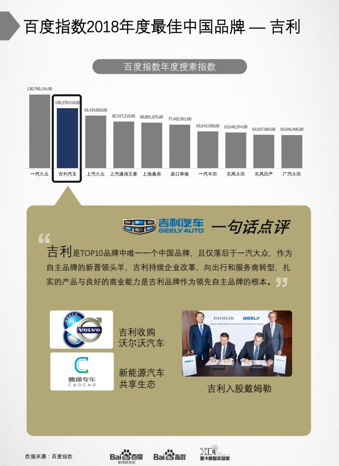2018年度最佳国产品牌被吉利收入囊中,TOP10中唯一上榜的国产汽车品牌就说明了吉利的优秀。