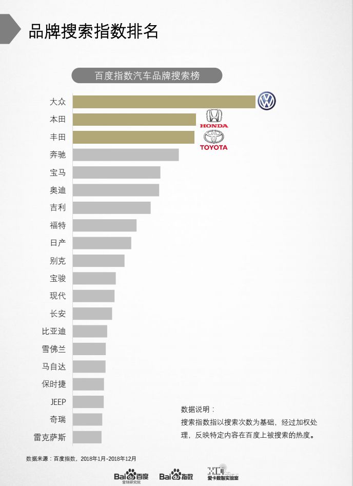 品牌搜索指数方面,大众获得第1名,本田、丰田紧随其后,而在资讯榜方面,丰田独居首位,大众和宝马分获2、3名。大众可谓是双榜综合排名最高的品牌了,18年收获了更多用户的支持。