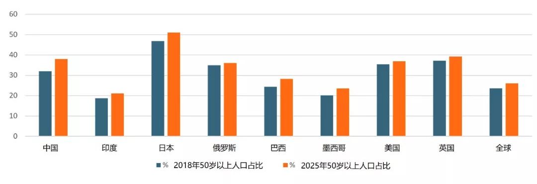 全球长寿率的增长,使得社会老龄化加剧。欧睿数据显示,2018年日本有超过两百万的居民超过90岁,至2025年,有一半的人口将会超过50岁。老年消费者不仅人口基数大,还有拥有强大的消费力,他们的经济状况优于其他还在奋斗阶段的年龄层。