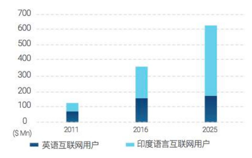 印度只有 12% 的人熟悉英语,英语用户集中在一线城市,英语用户互联网普及率已经非常高。二线以下印地语和区域性语言用户将在未来有超越三倍的增长,但由于印度贫富差距超过 45%,非英语用户的实际购买力有限。