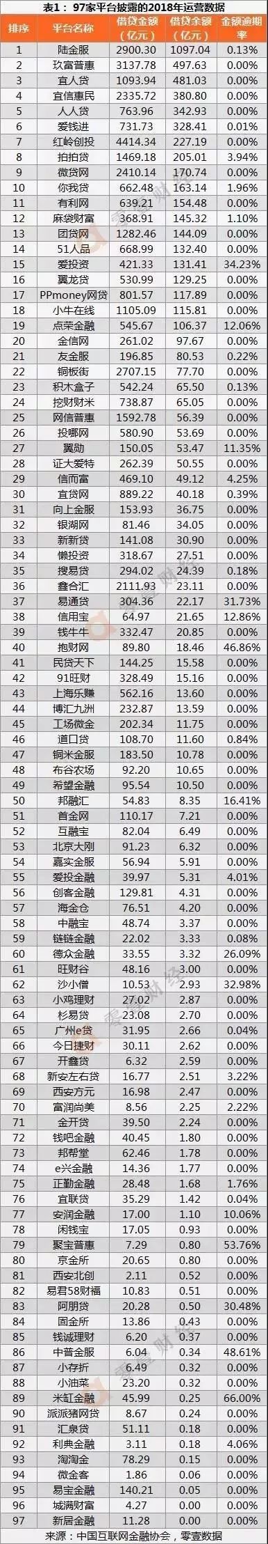 目前,已有97家平台在中国互联网金融协会登记披露平台上披露了截至2018年12月的运营数据。