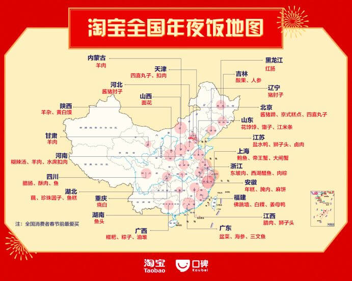 淘宝公布全国年夜菜特色地图
