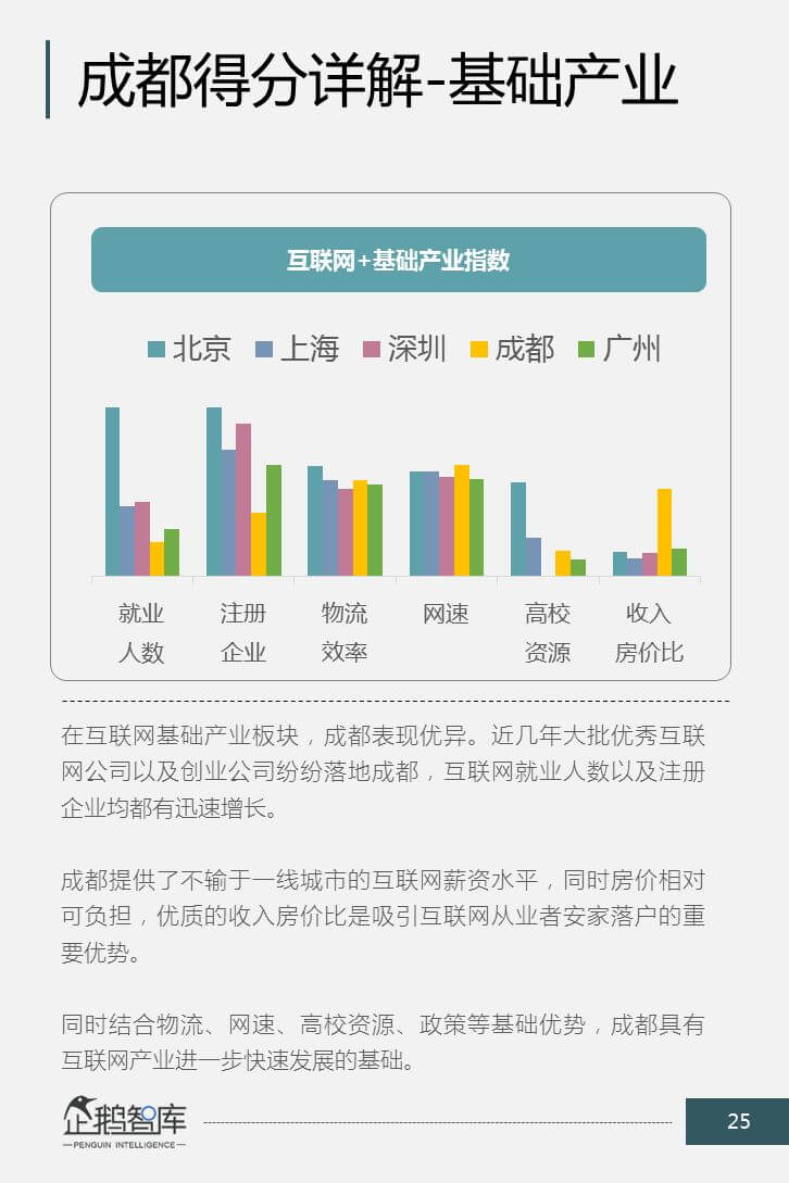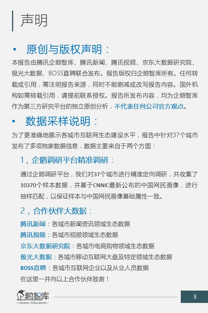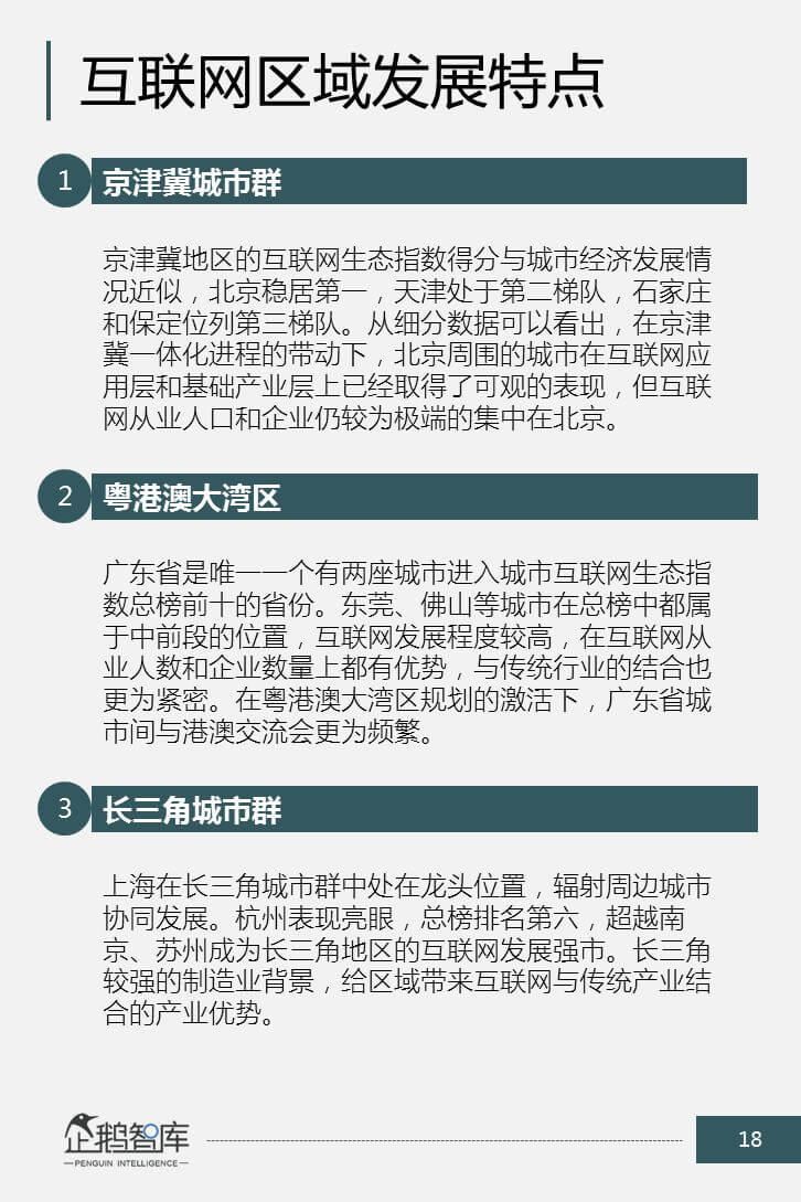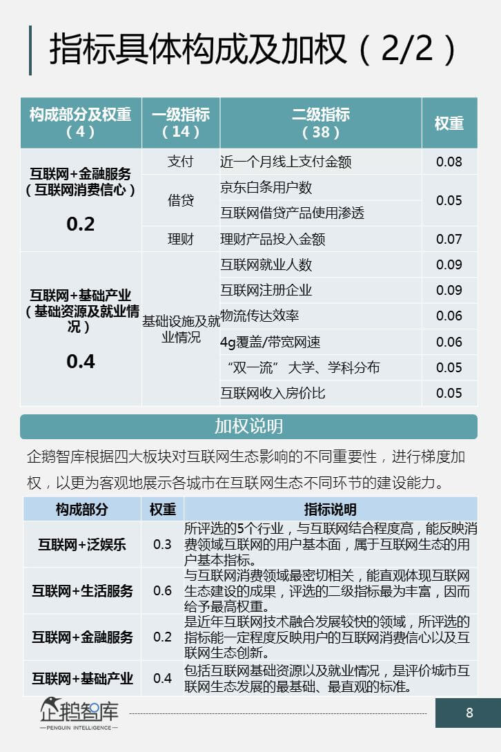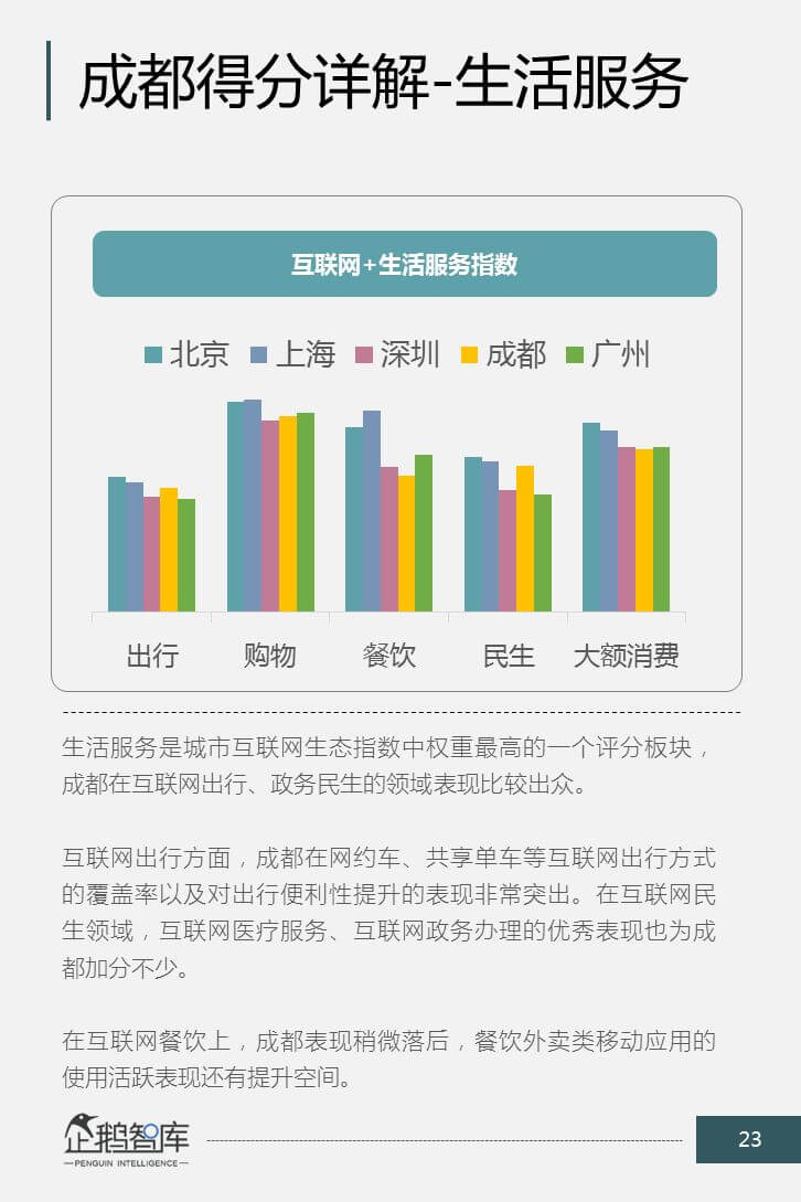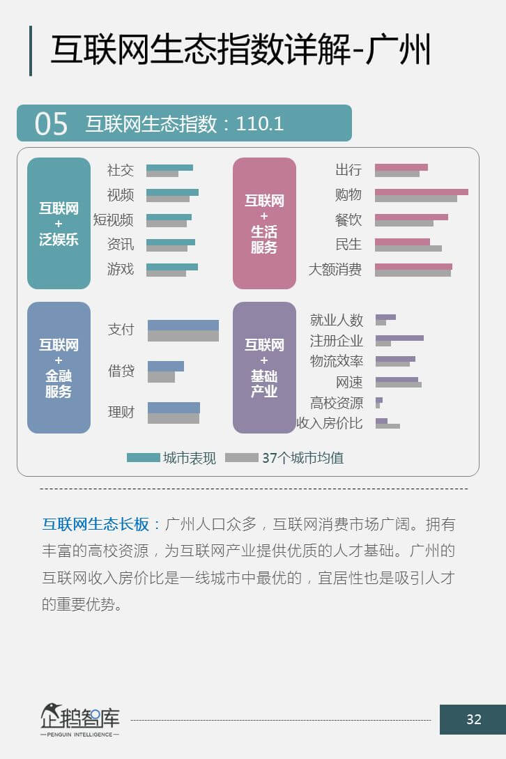 为丈量不同城市、不同区域的互联网生态发展水平,以及挖掘新一线城市互联网黑马,企鹅智库(id:BizNext)在全国城市中根据行政级别、商业能力、城市人口数、互联网基础能力等多个维度,选取出37个城市进行评选,以用户真实互联网行为习惯为原点,并结合互联网基础产业数据,在14个互联网生态领域,选取38个指标维度进行综合评估,结合综合排名与细项指标,去寻找各城市互联网生态发展的优势之处。