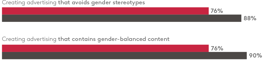 营销人员认为他们对性别的理解是正确的。绝大多数人相信他们的企业正在创建避免性别刻板印象或平衡两性内容的广告。但是更多的女性营销人员认为这个行业正在失去平衡。