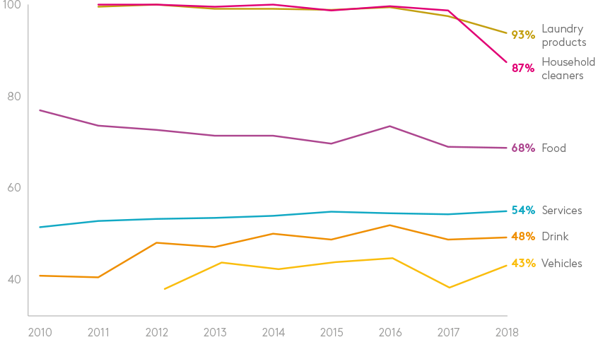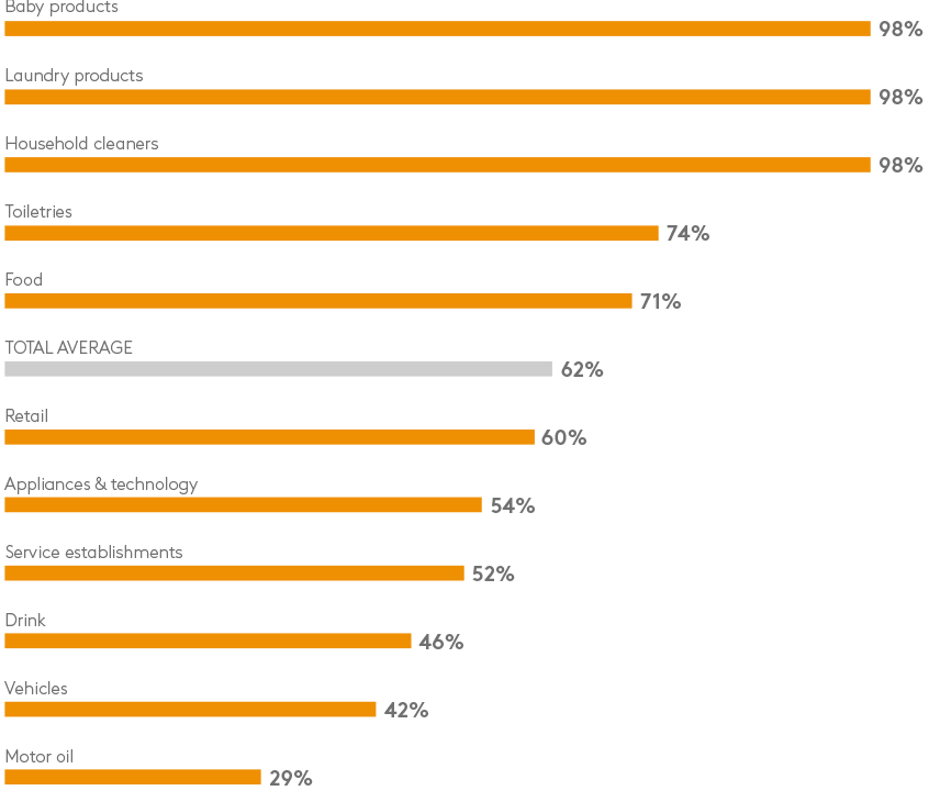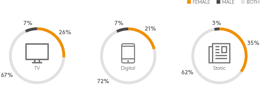 广告测试和定向通常关注两性,或专门针对女性。静态广告(打印和户外)测试更有可能针对女性。有些行业的营销人员则更可能针对女性,例如婴儿用品、洗衣用品和家用清洁剂,几乎100%都是女性。
