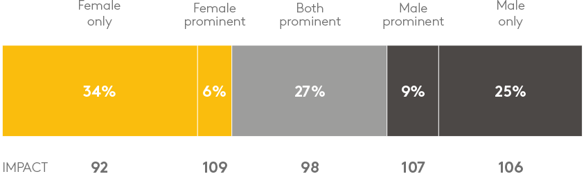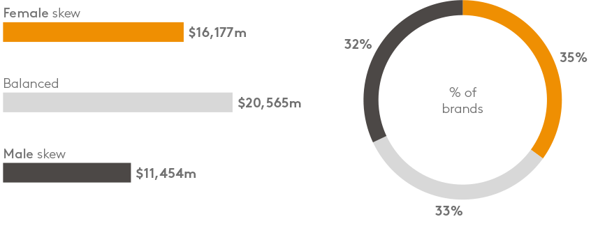 两性平衡的品牌更能推动品牌价值,但是只有1/3的品牌实现了这样的平衡。