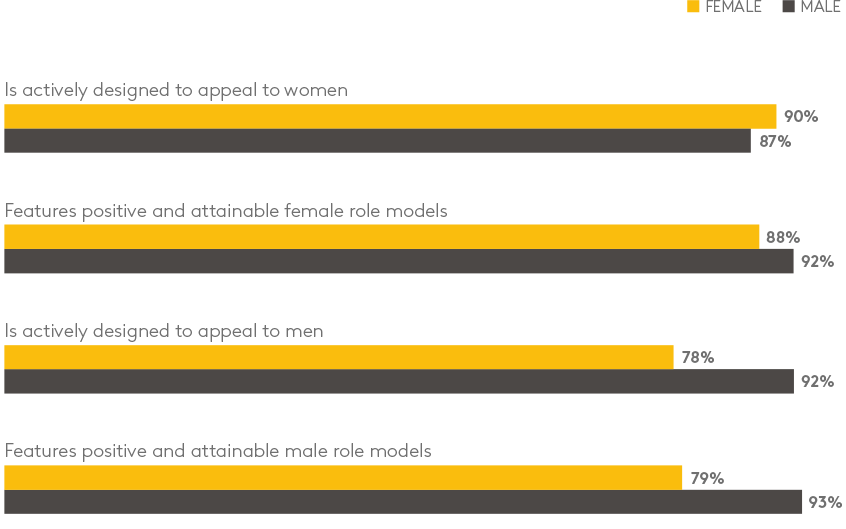 营销行业认为他们的广告越来越能代表两性。
