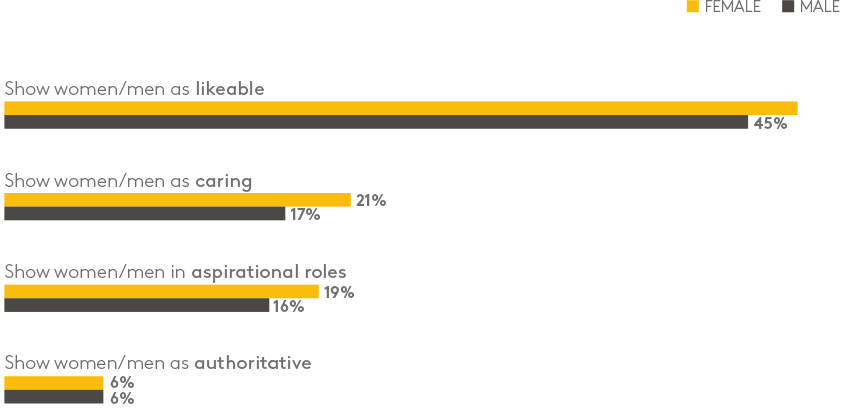 JWT / Geena Davis Institute的研究进一步验证了消费者的担忧。对2006-2016年的2000部戛纳电影节电影进行了分析,男性说话的广告数量是女性的七倍。男性在屏幕上出现的时间比女性多四倍。男性被证明是“聪明”的可能性高出62%。