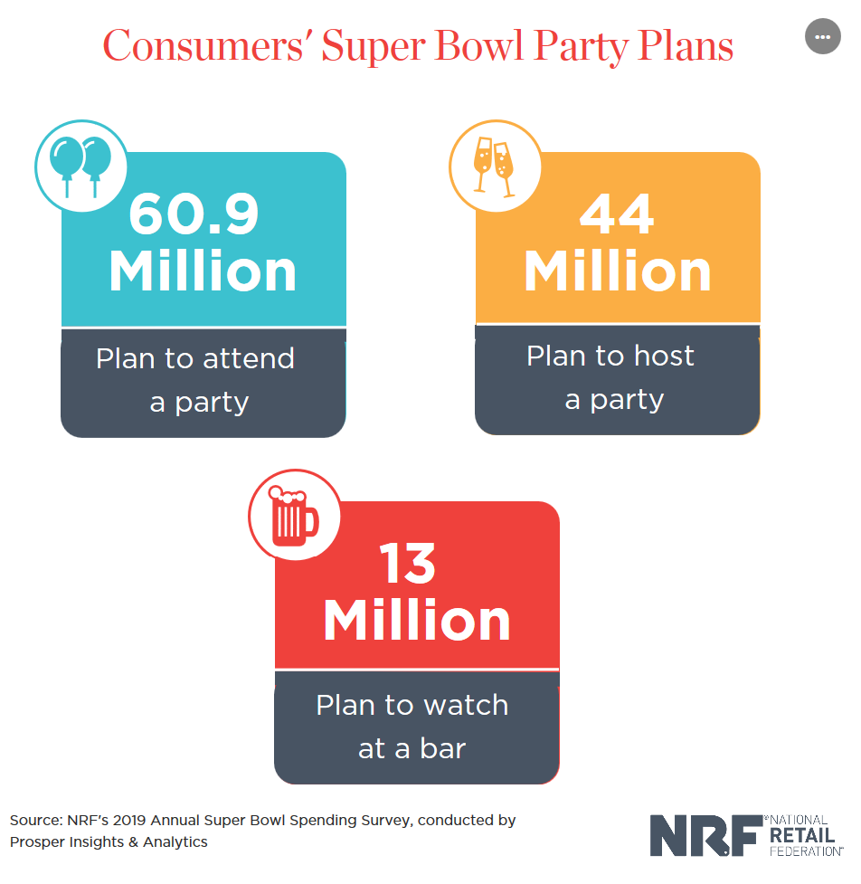 调查发现,72%的成年人计划观看比赛,比去年的76%有所下降。在观看者中,79%的人计划购买食品和饮料,10%计划购买团队服装和配件,7%购买装饰品,7%购买新电视,4%的消费者购买家居,如娱乐中心。