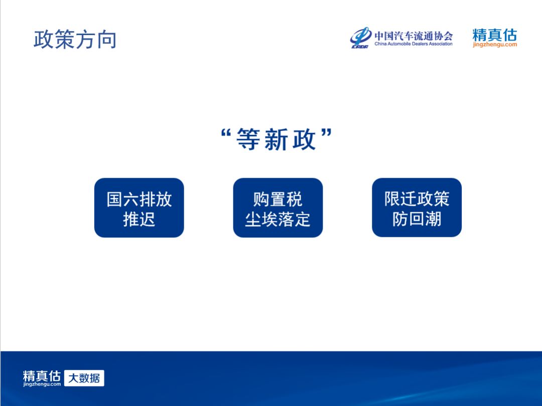 一月初部分地区公布了国六排放标准推迟执行的决定。除了排放标准外,另一个要等的政策是“税率”。这几大问题每年都会深刻影响新车和二手车交易。新车市场很多人比较关心“购置税”,目前10%的购置税率已经确定(7月1日实施)。同行们一直期待的减税愿望落空了。