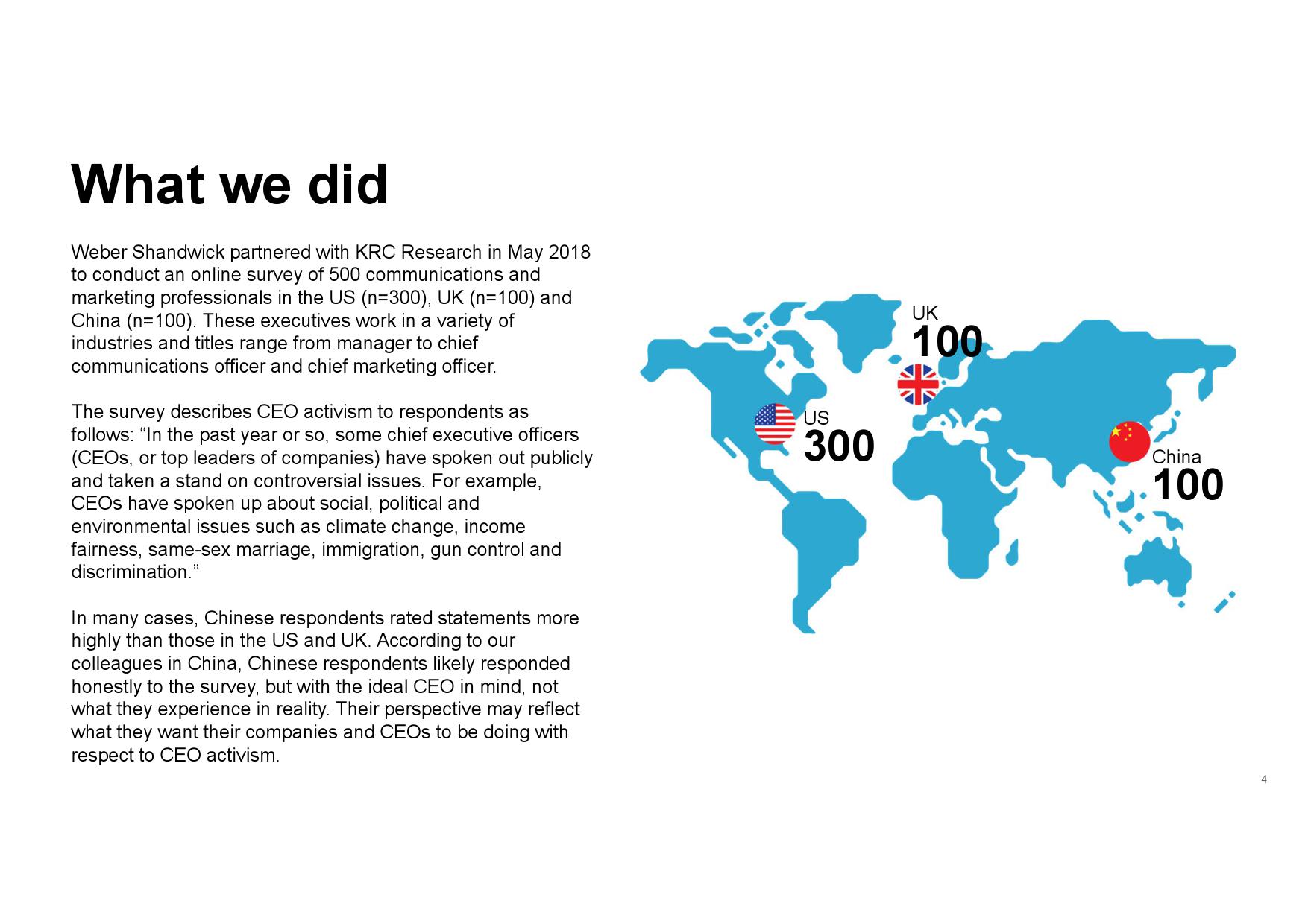 当然,这并非表示CEO行动力没有任何风险。十分之七(73%)的传播和营销专业人士认为, 积极对社会问题发表自我见解的CEO会为公司带来一定的风险。他们认为最大的感知风险来自于社交媒体上的批评(59%),其次是客户批评(55%)和员工批评(49%)。