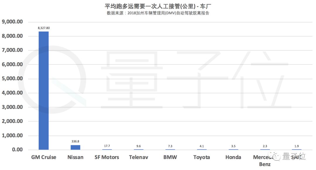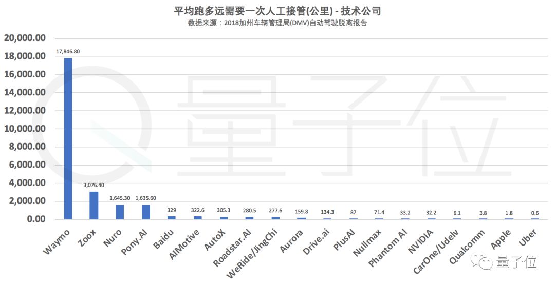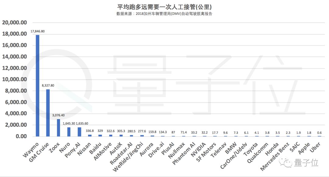 总共28家公司中,排名最后的10家每次人工接管后平均跑不到10公里的公司,车厂占了6家,量子位真的想劝他们,还是认真搞硬件吧,软件比不过Waymo的。
