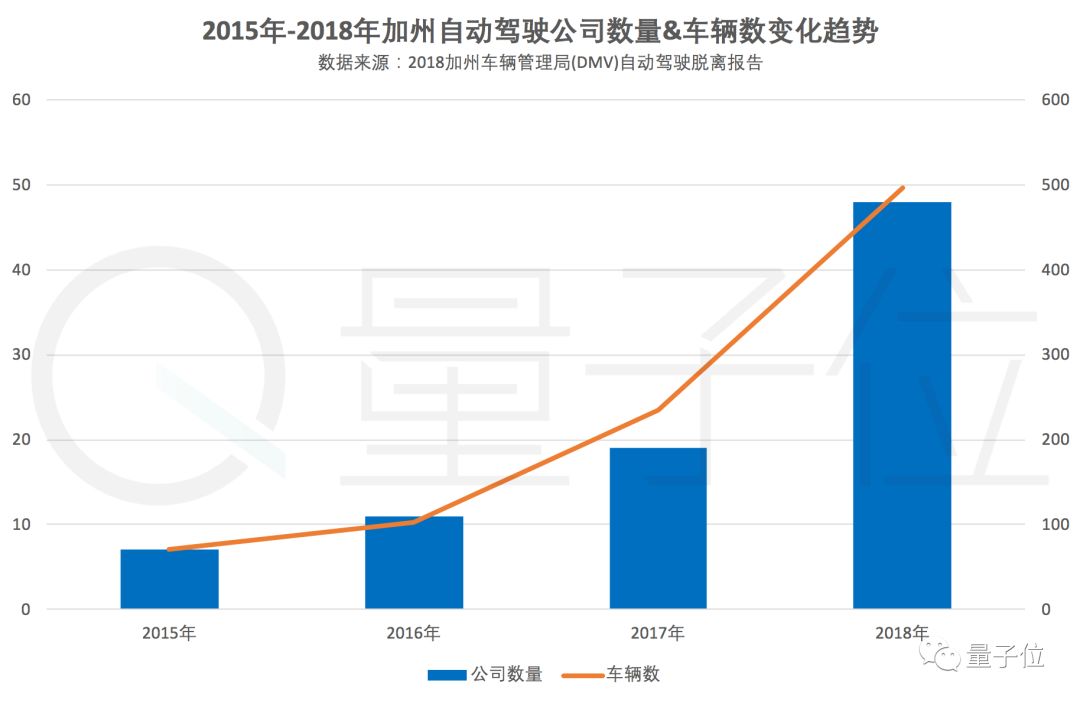 从上图可以看出,2018年是大爆发的一年。与2017年相比,无论是报告的公司数量还是车辆,都呈现出了爆炸式的增长。