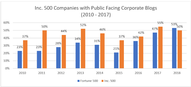 《财富》500强公司中使用博客的比例9年来首次超越了Inc. 500。