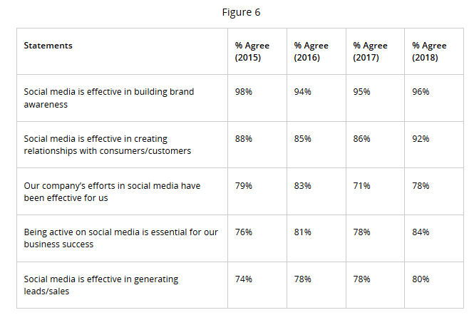 94%的Inc. 500(全美发展速度最快的500强企业)至少使用一个社交媒体平台,2017年这一比例为96%。