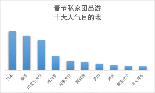 数据显示,春节私家团出游十大人气目的地依次为日本、泰国、印度尼西亚、新加坡、马来西亚、阿联酋、美国、越南、斯里兰卡和澳大利亚。