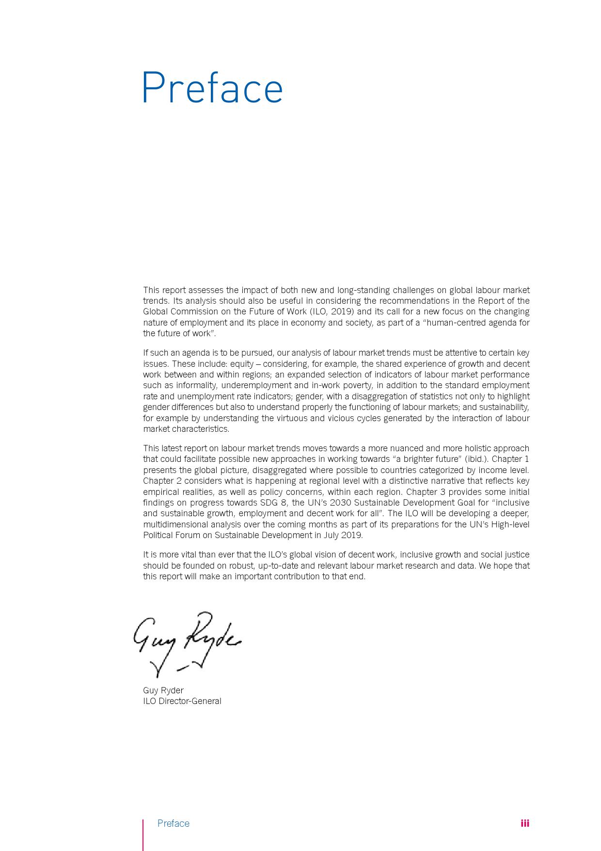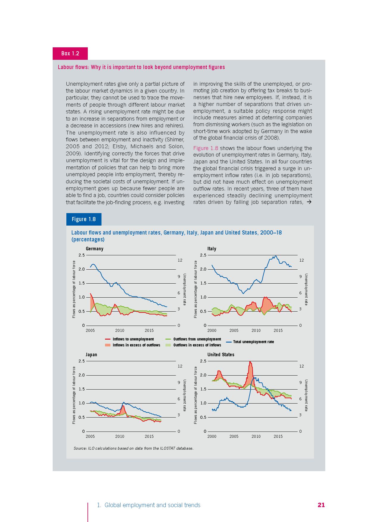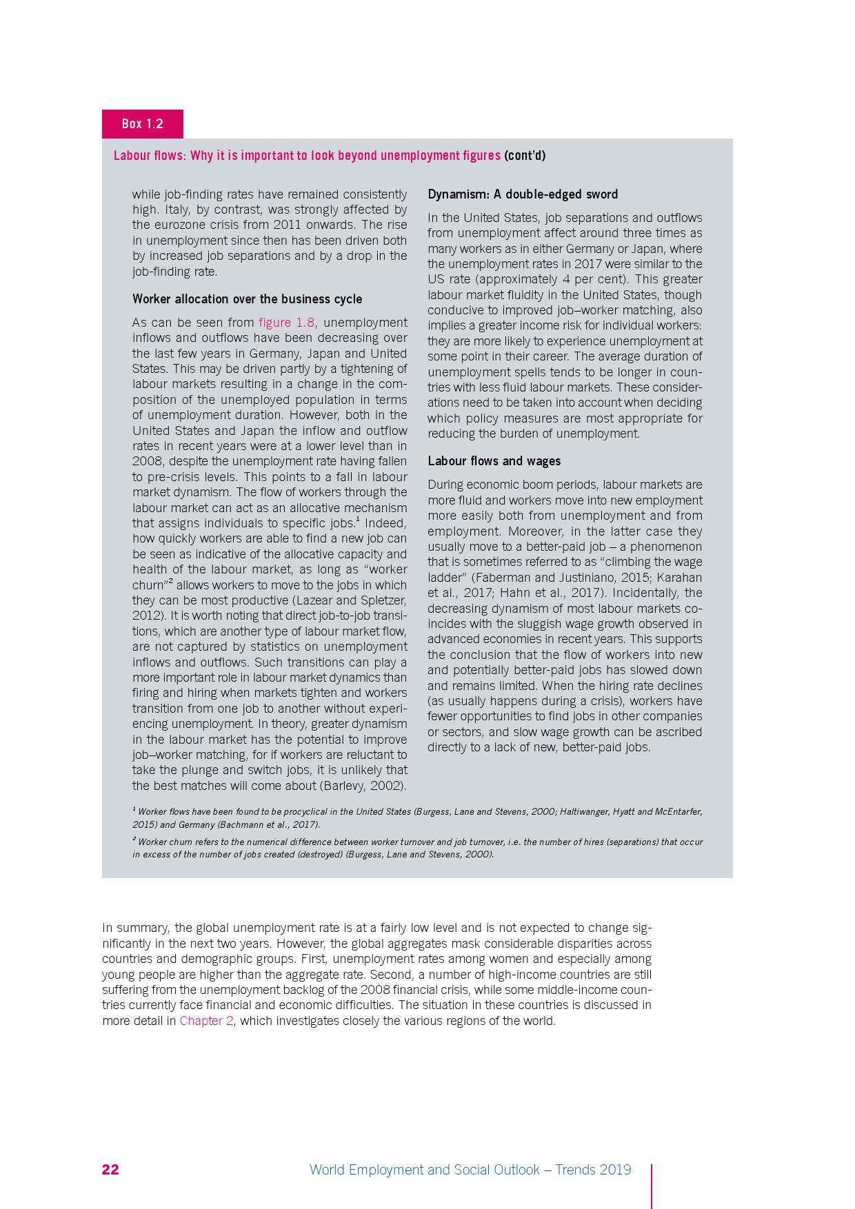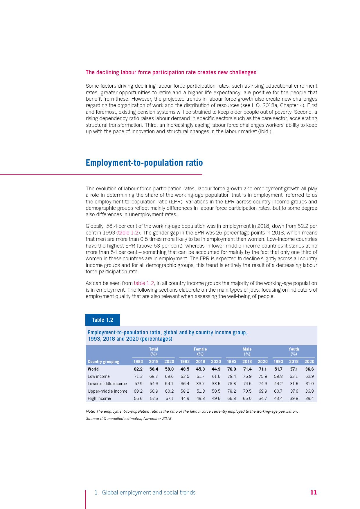 年度报告还强调了一些进展。如果世界经济能够避免重大衰退,预计许多国家的失业率将进一步下降。过去30年来,工作贫困率大幅下降,接受教育或培训人数也有所增加,特别是在中等收入国家。