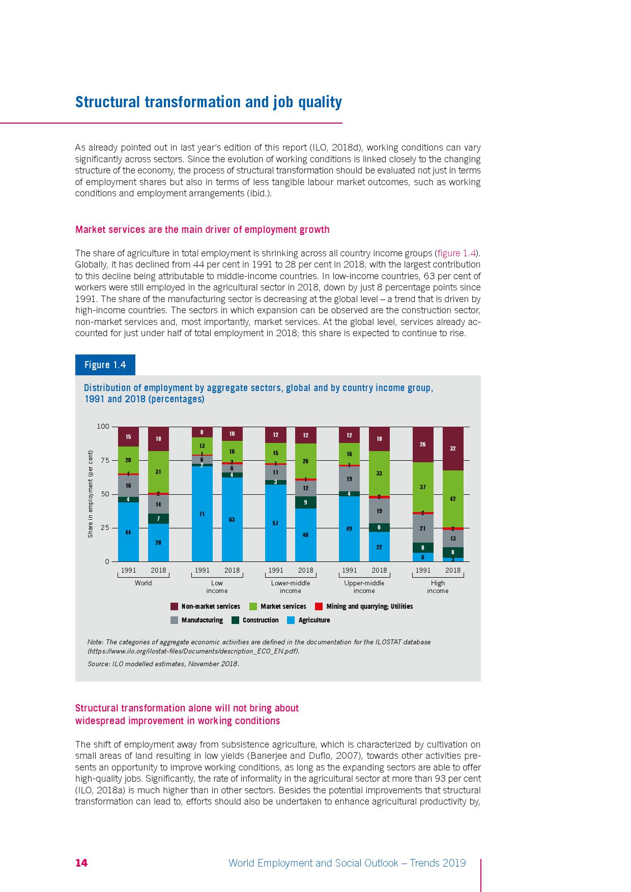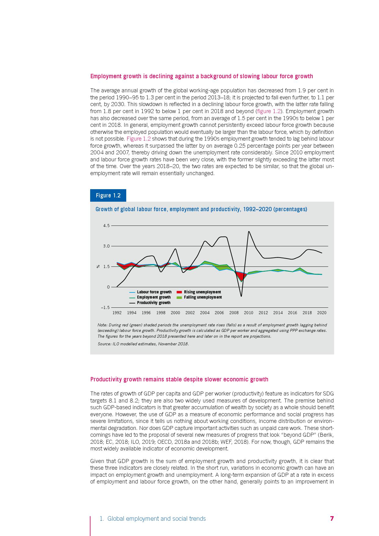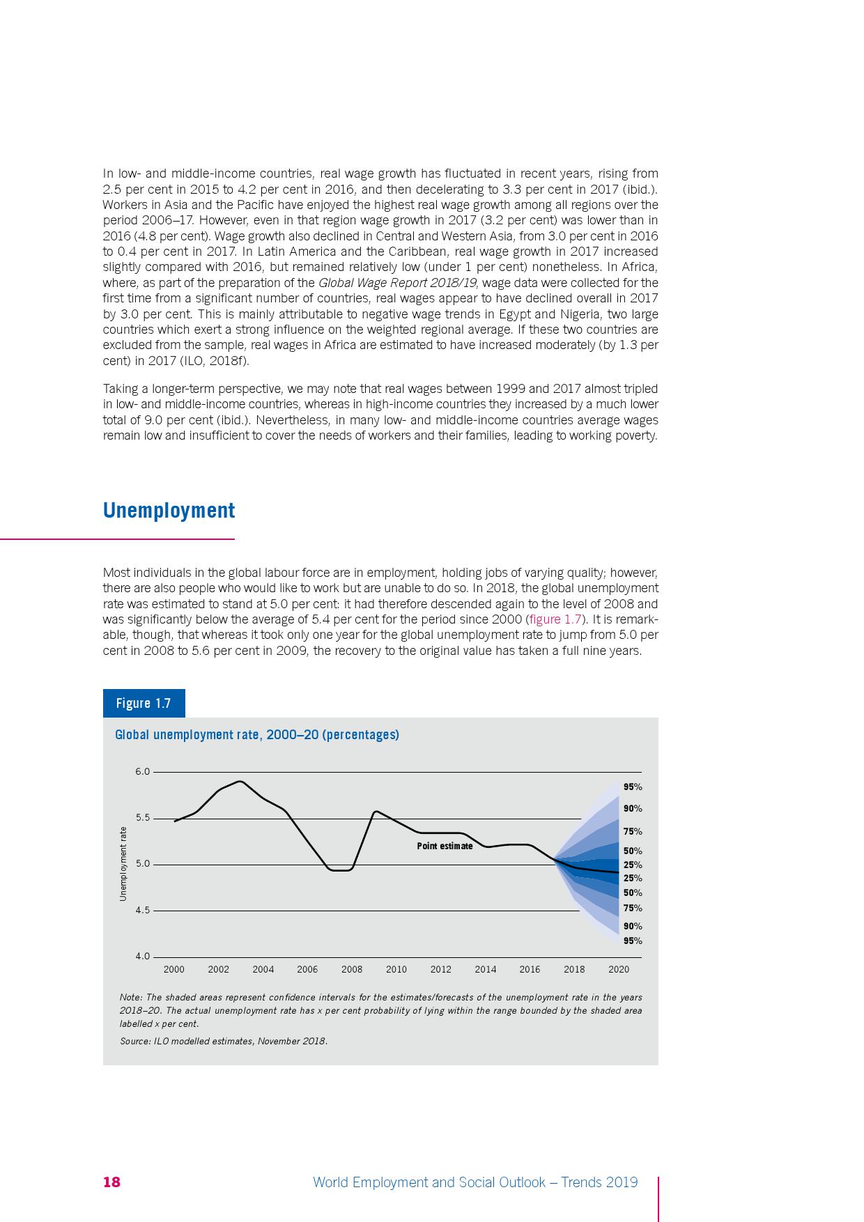 报告指出,2018年全球33亿被雇佣的人中的大部分面临不充分的经济保障、物质福利和均等机会。更重要的是,全球在减少失业方面取得的进展并没有反映在工作质量的提高上。
