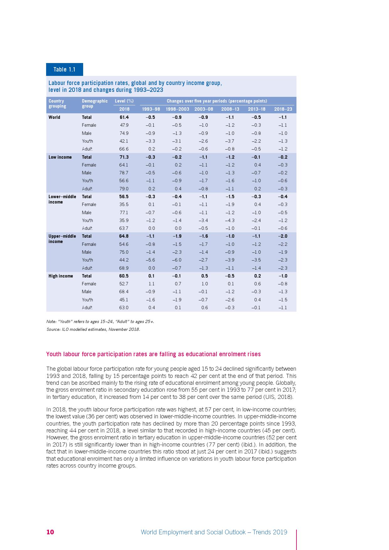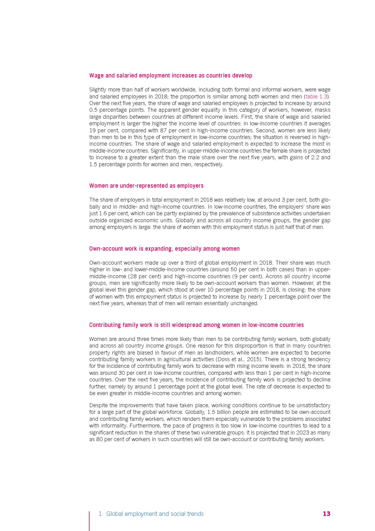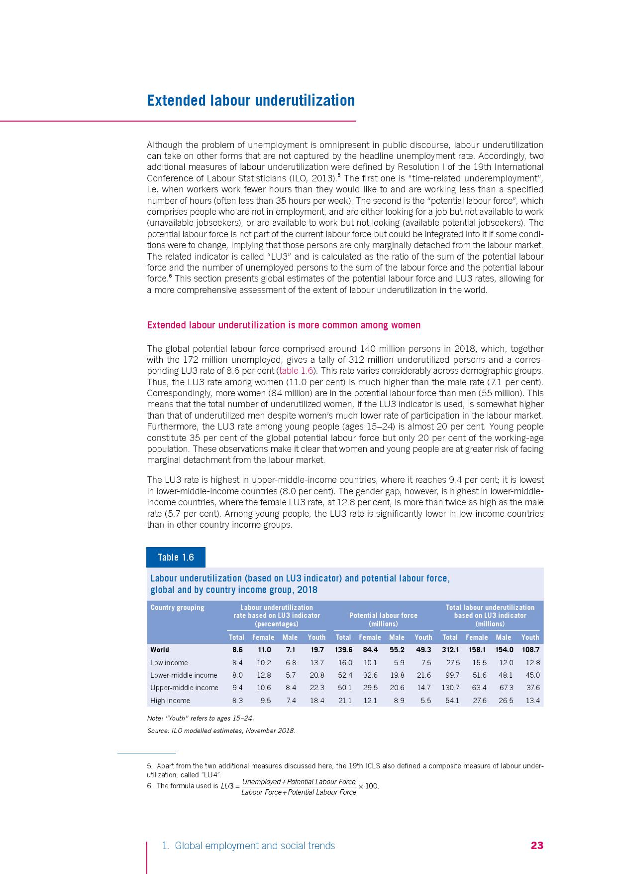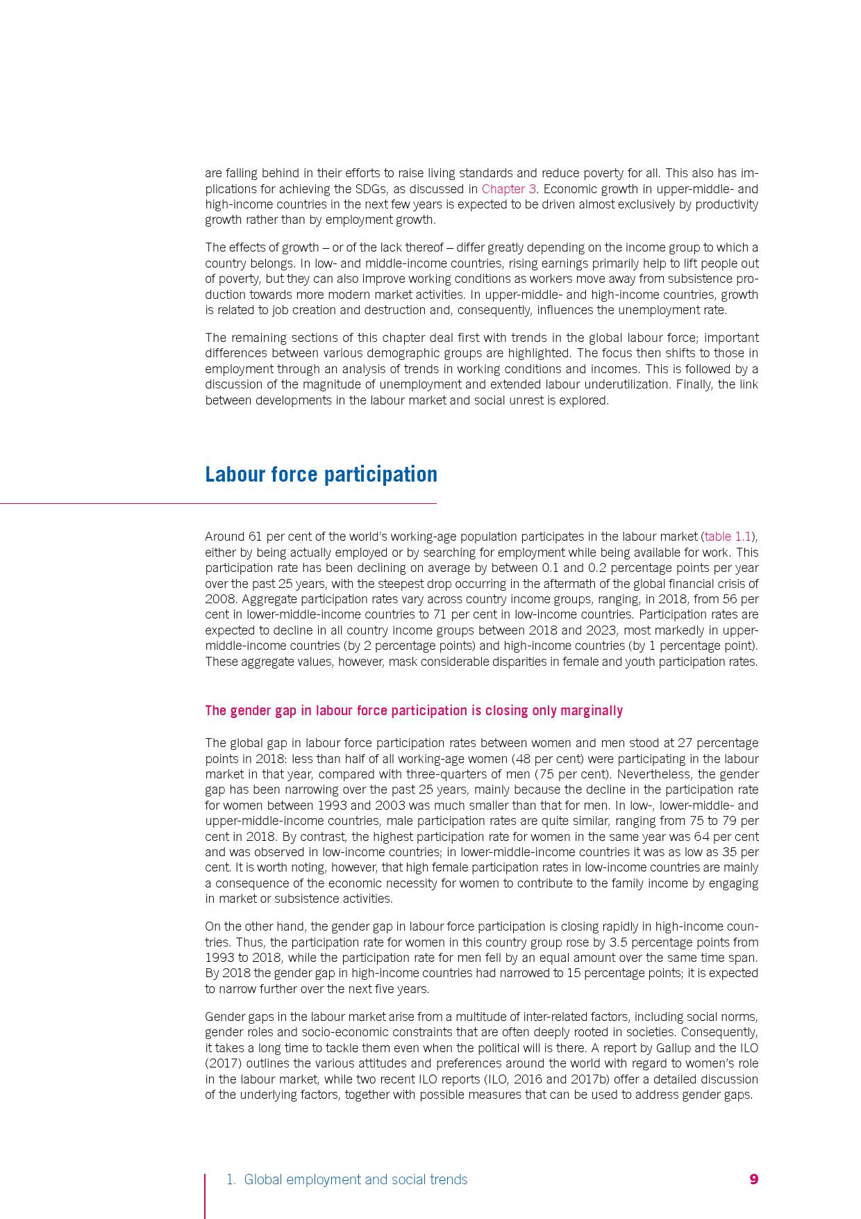 国际劳工组织报告指出,只有48%的妇女从事劳动,而男子则为75%。妇女也更多地构成了潜在的、未充分利用的劳动力。
