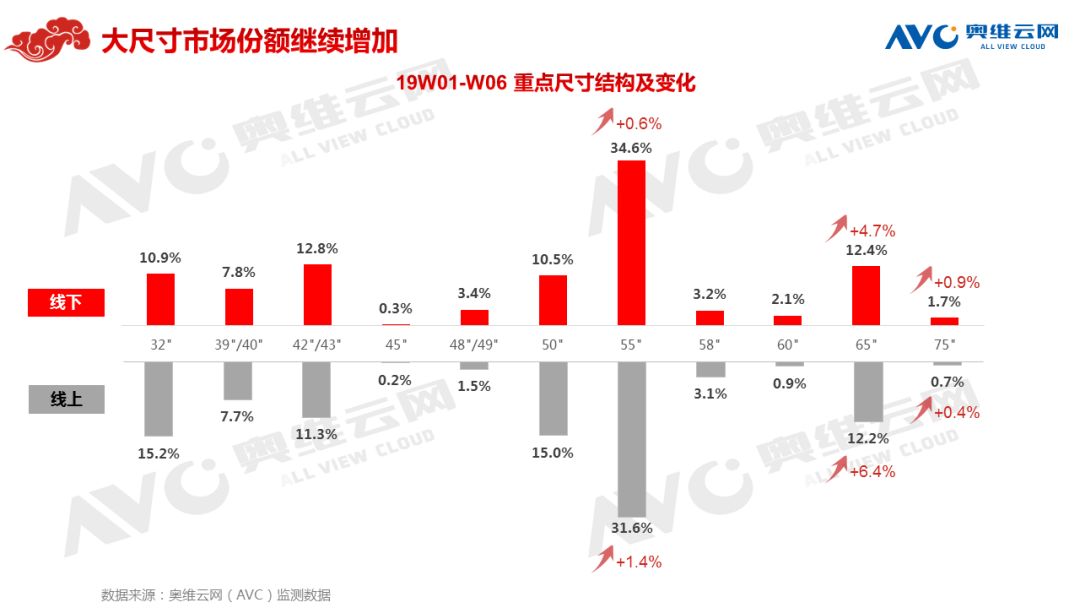 传统节点促销止跌回暖,2019年元春促销期中国彩电市场零售量规模达488万台,同比增长0.7%,零售额规模达149亿元,同比下降13.6%。春节促销期提前,1月和2月的市场表现可以说是冰火两重天,预计2019年1月中国彩电市场零售量规模达623万台,规模达到6年最高,同比增长18.5%;2月中国彩电市场零售量规模达271万台,同比下降18%。整体而言,1-2月中国彩电市场在品牌拉动和低价刺激的影响下,开年良好,预计市场零售量规模为894万台,同比增长4.4%。