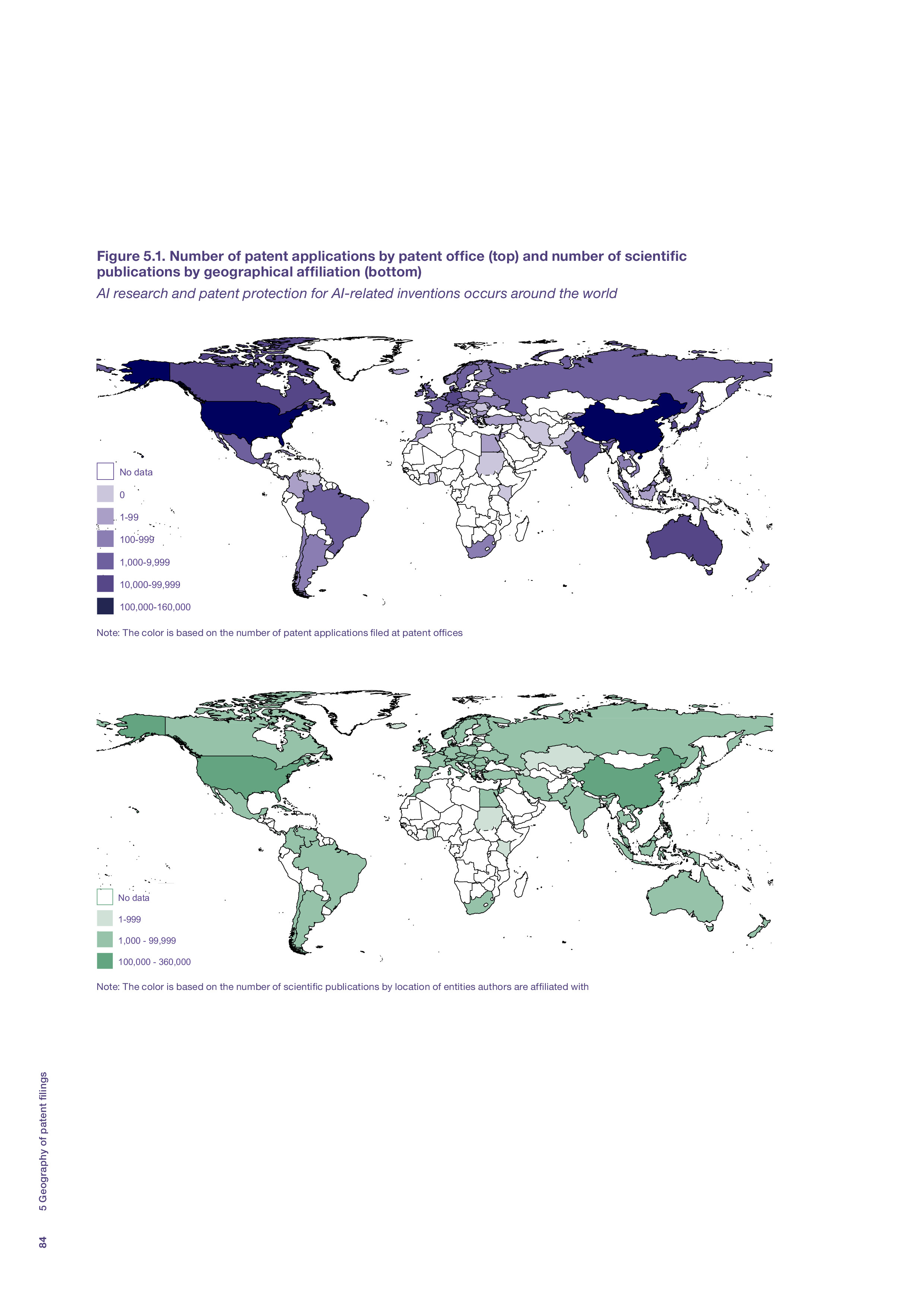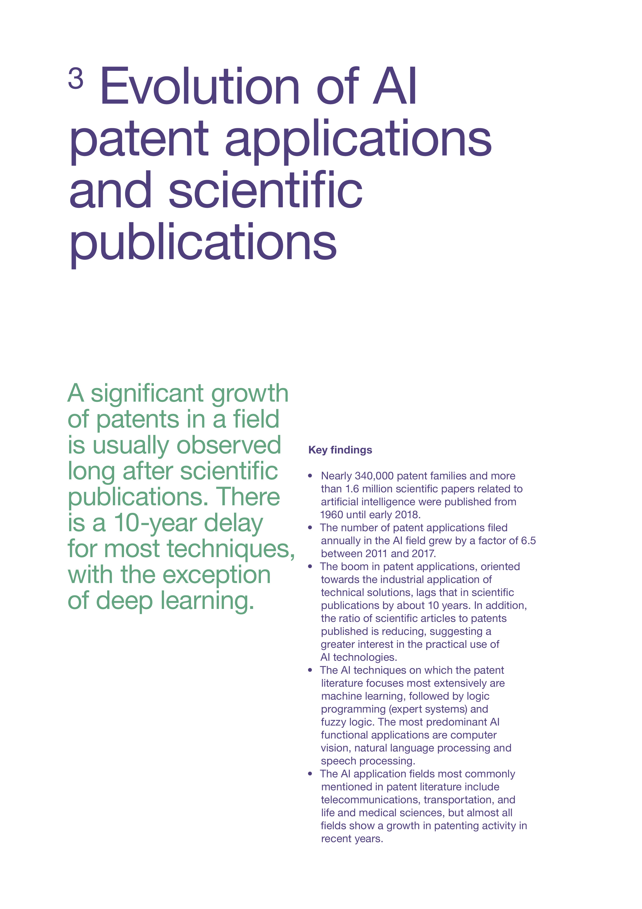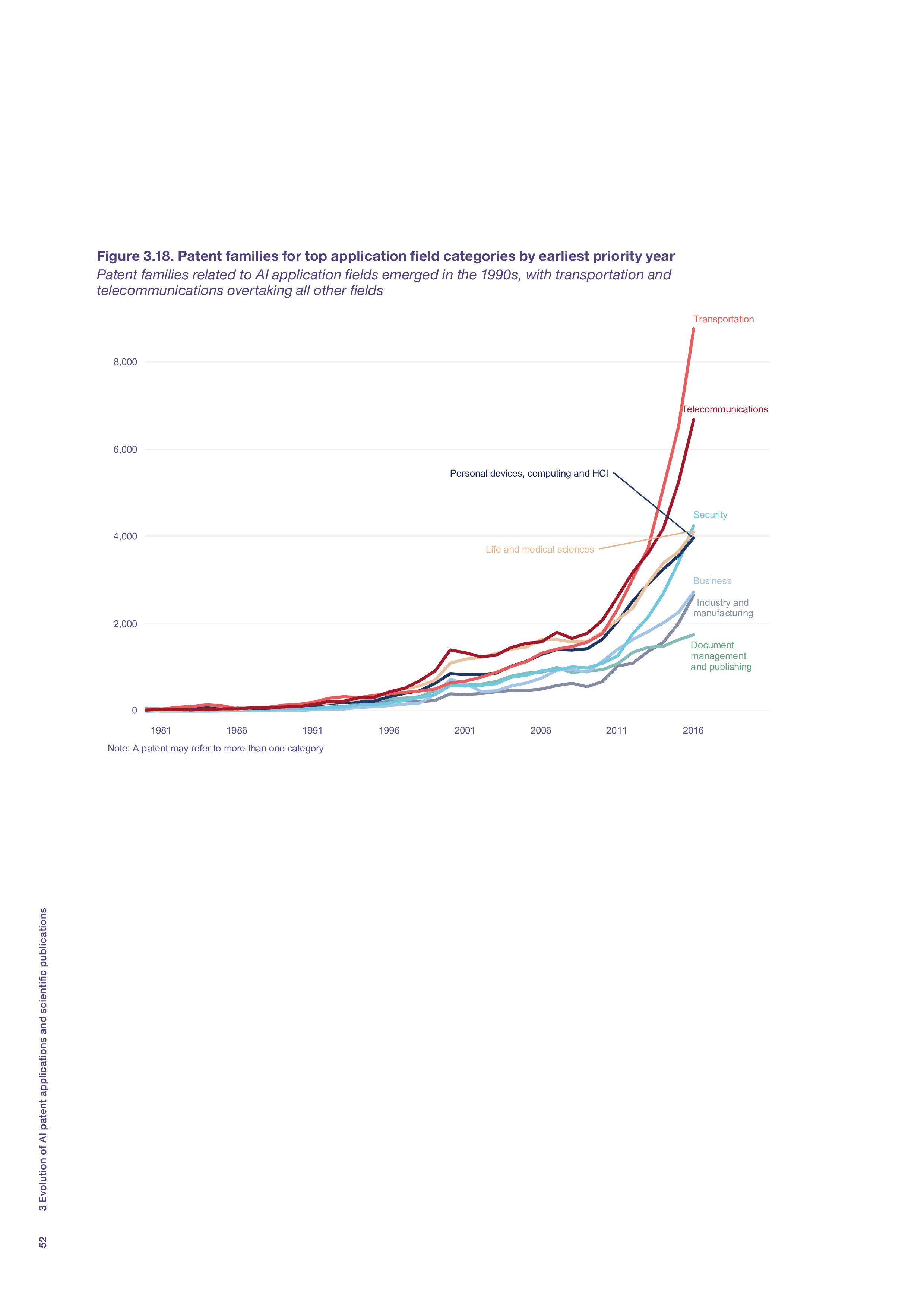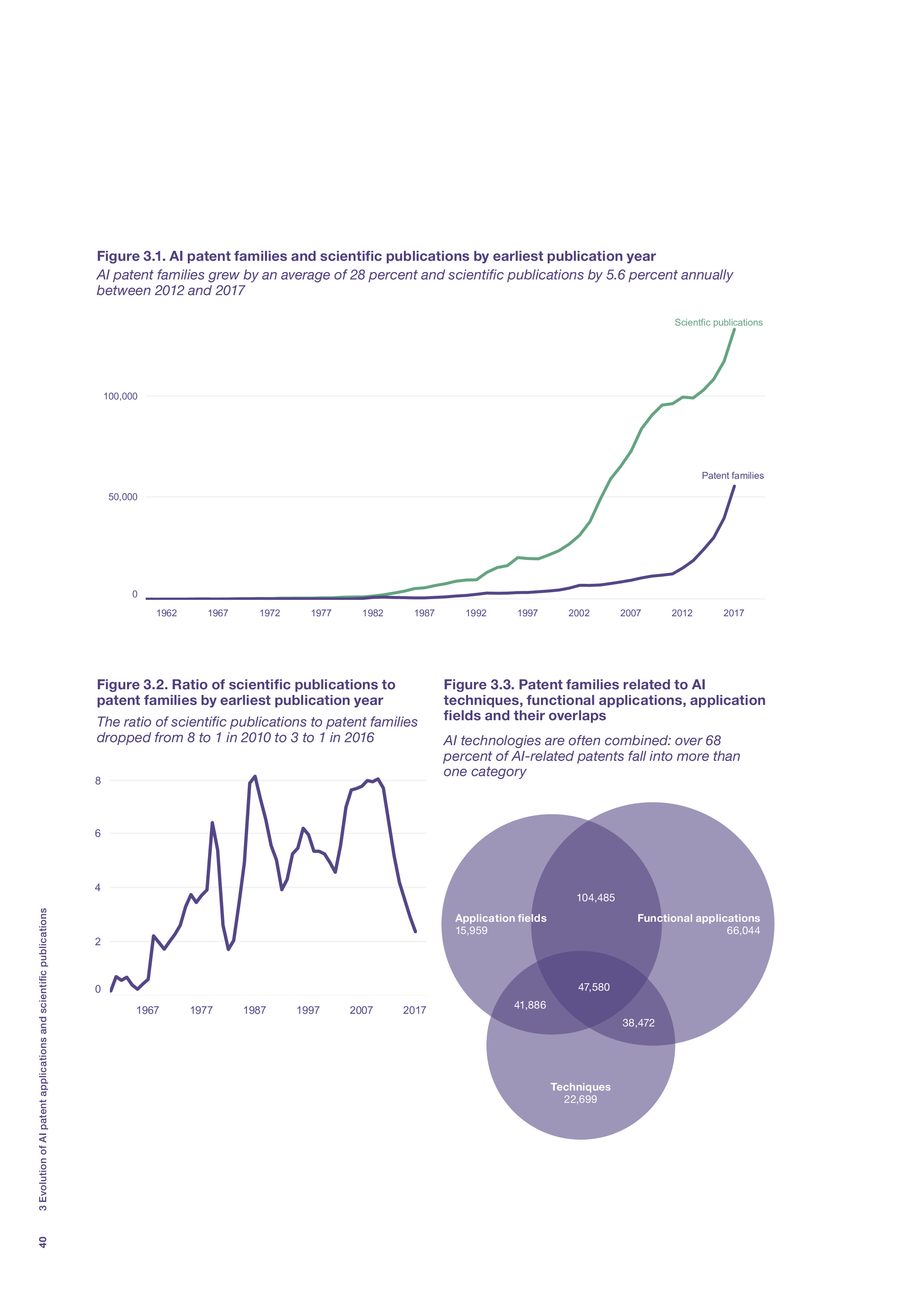 自20世纪50年代人工智能出现以来,创新者和研究人员已经提交了近34万项与人工智能相关的发明申请,出版了160多万份科技出版物。特别是来自日本、美国和中国的公司,在专利活动中占主导地位。