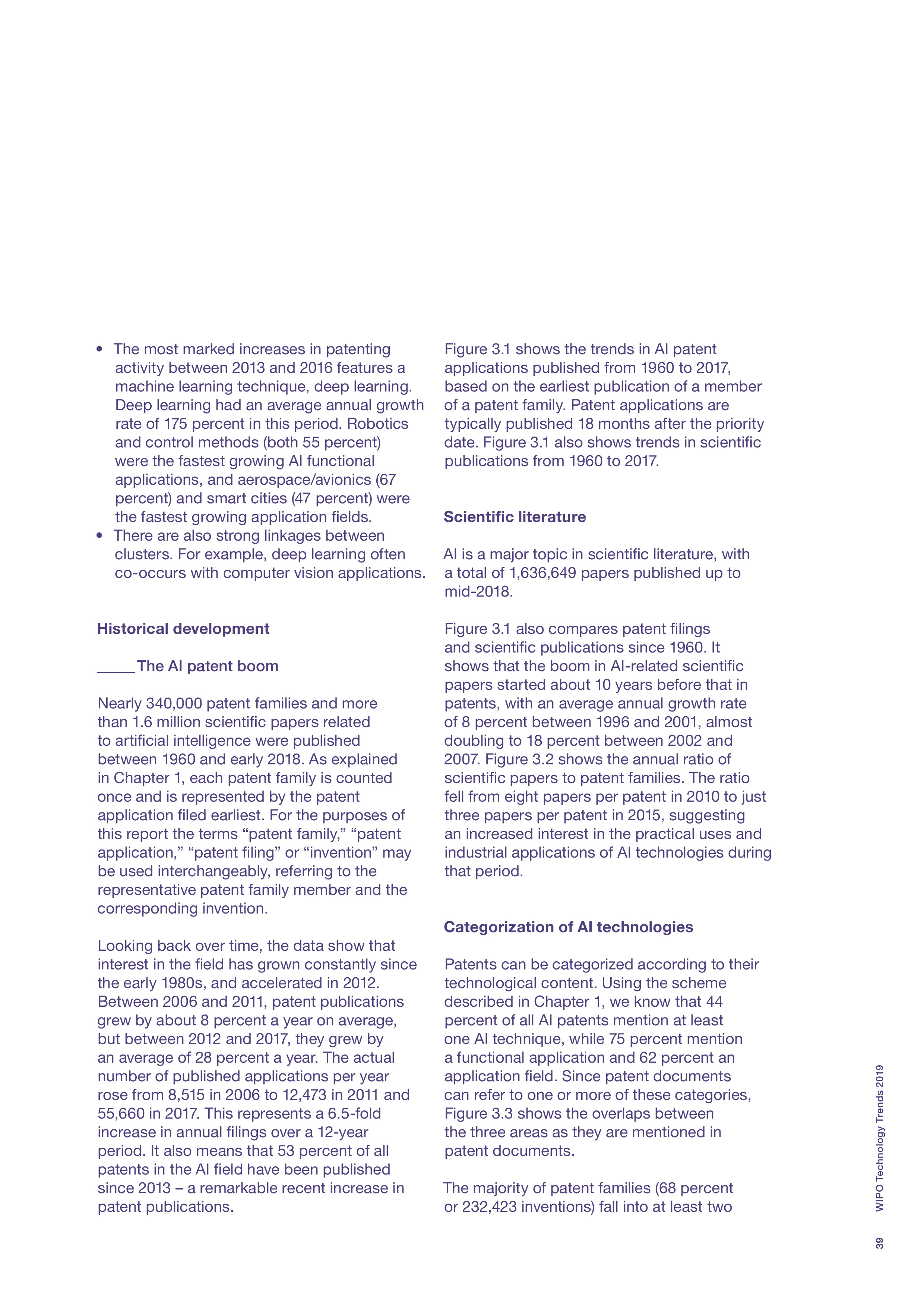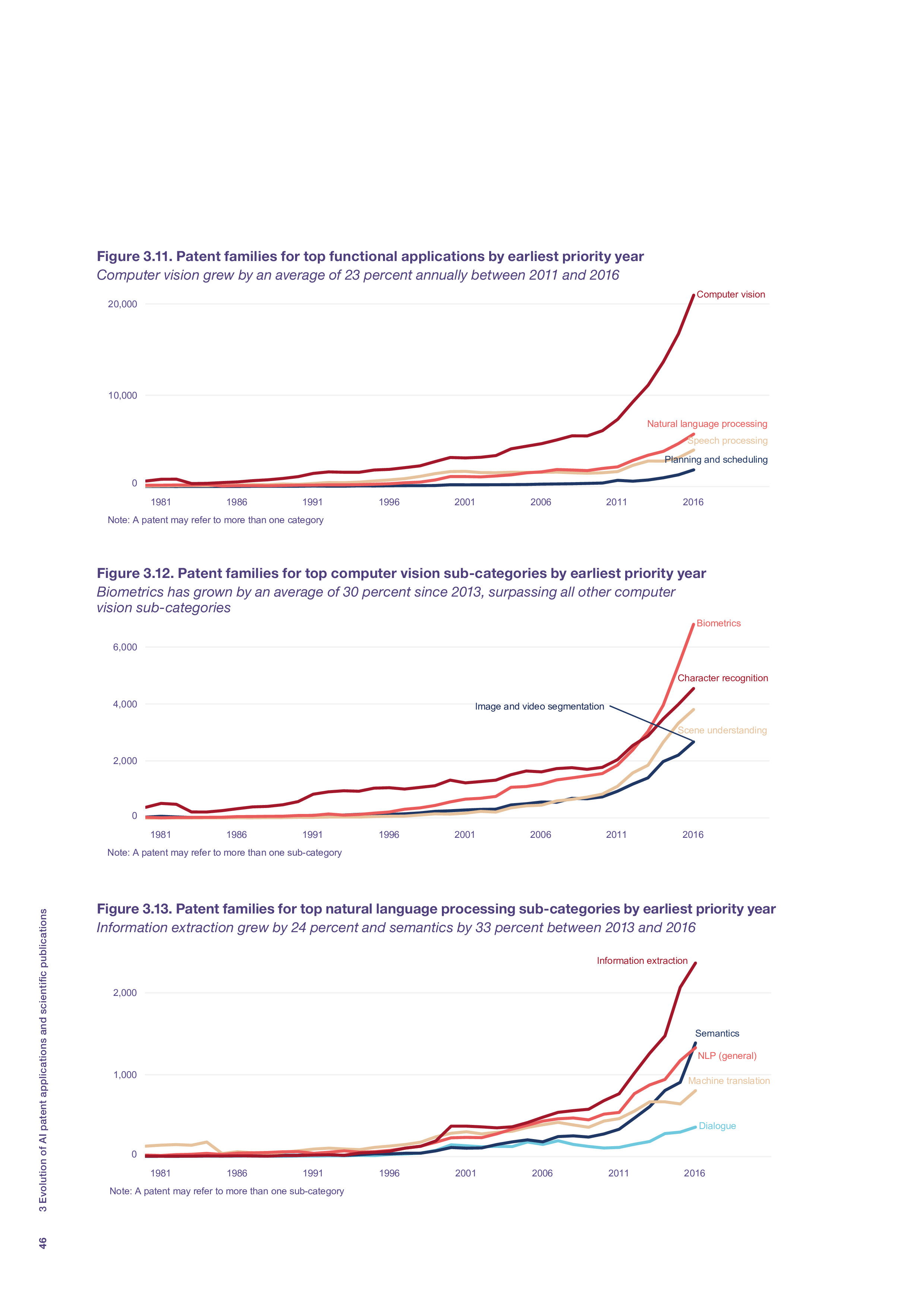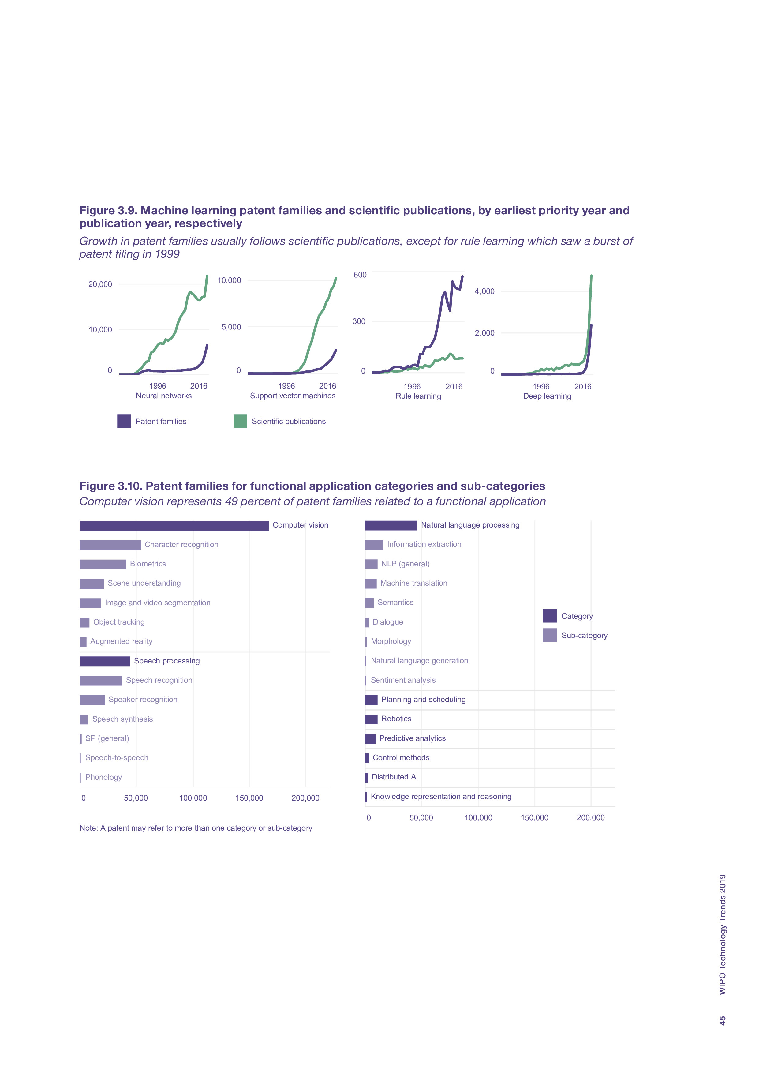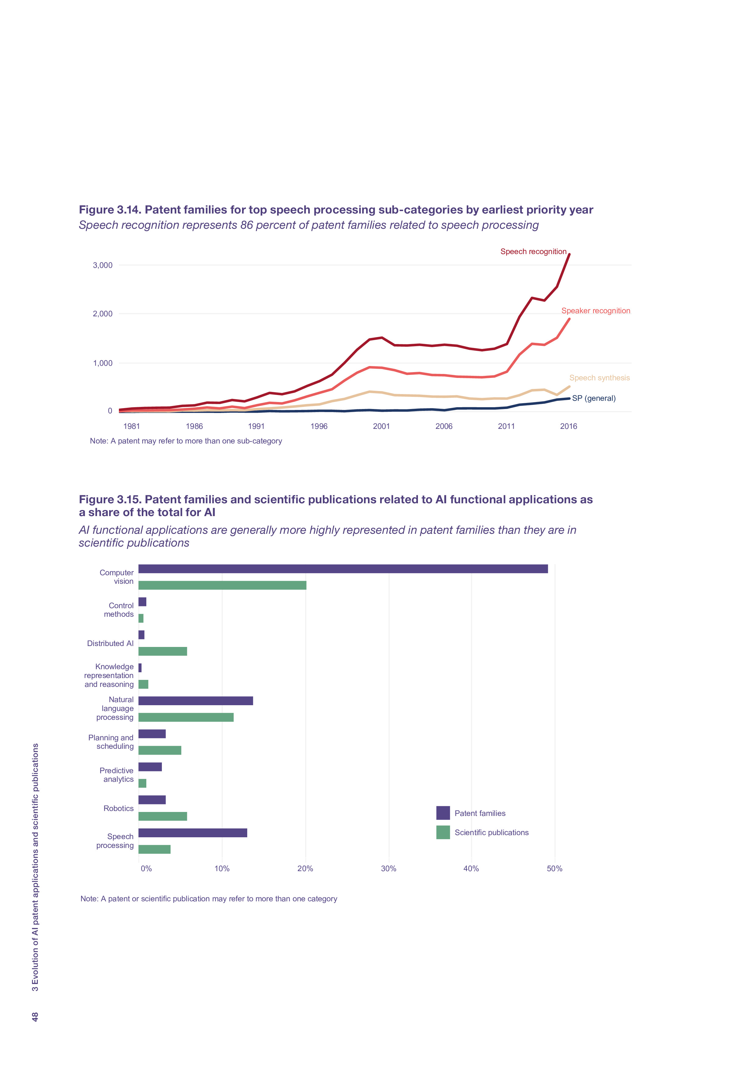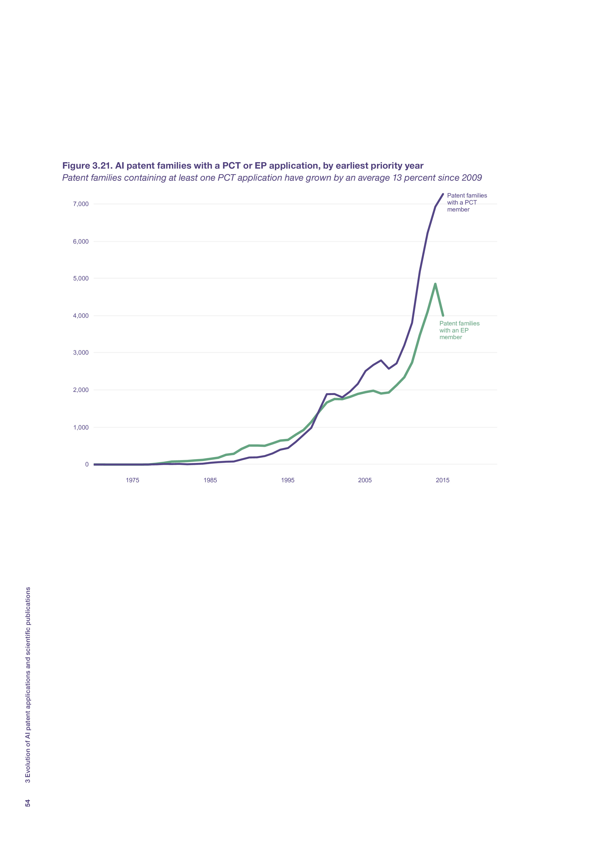 自20世纪50年代人工智能出现以来,创新者和研究人员已经提交了近34万项与人工智能相关的发明申请,出版了160多万份科技出版物。特别是来自日本、美国和中国的公司,在专利活动中占主导地位。