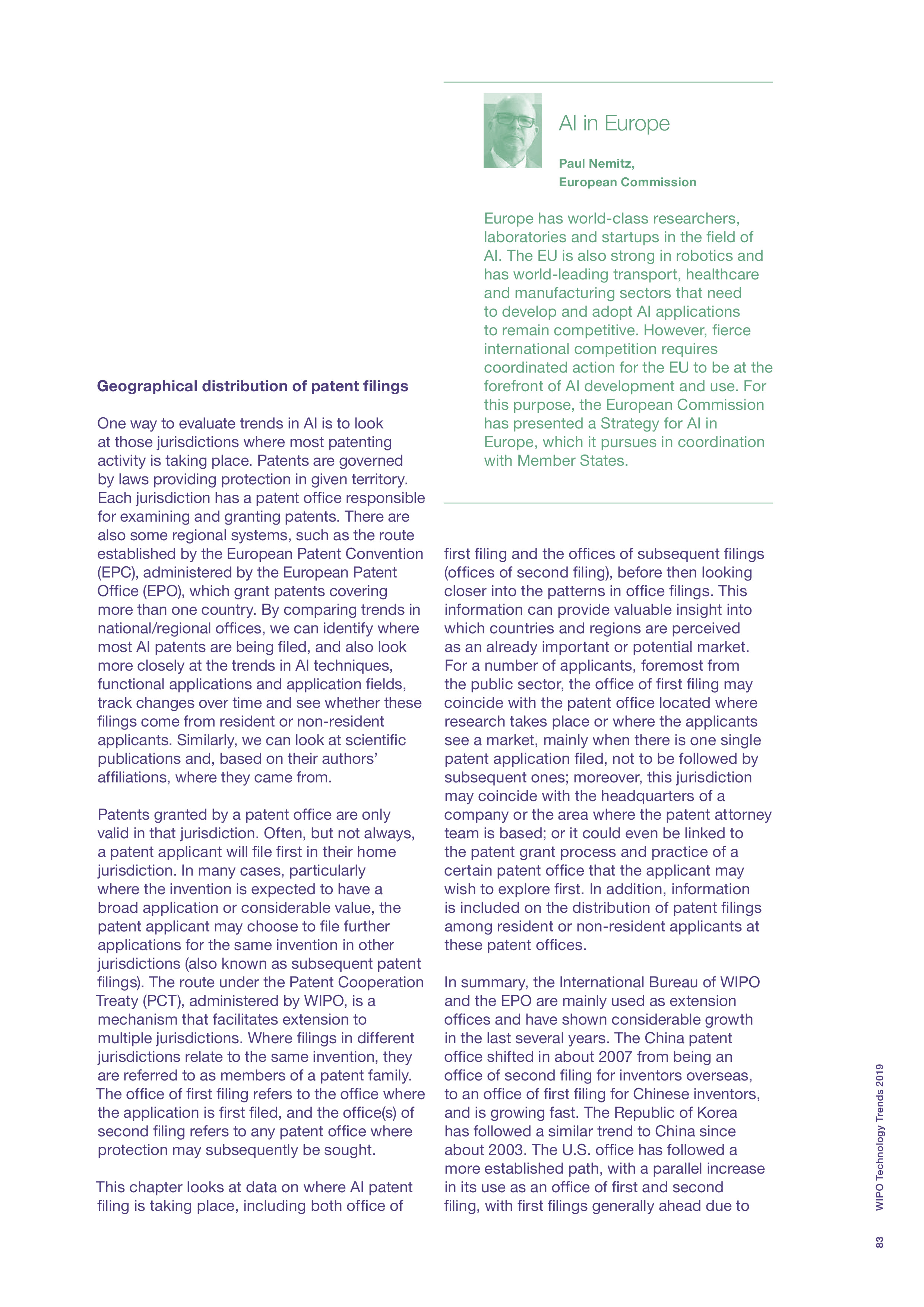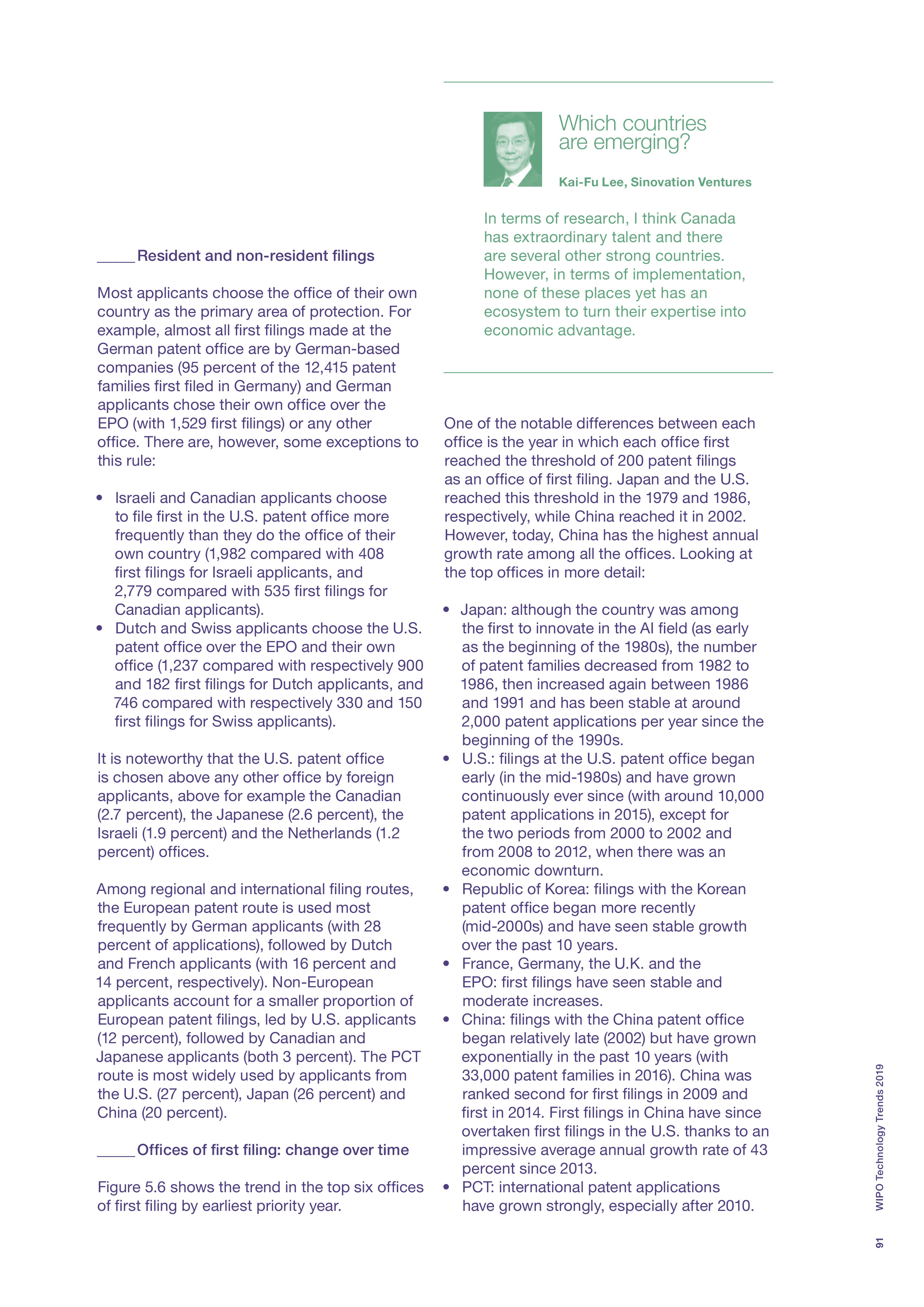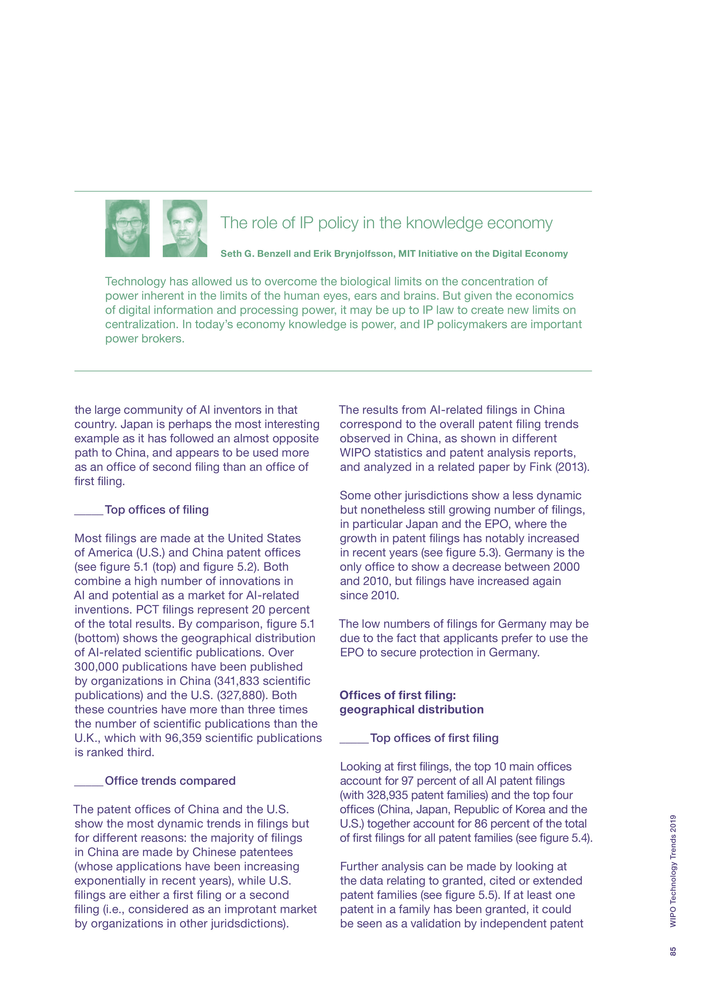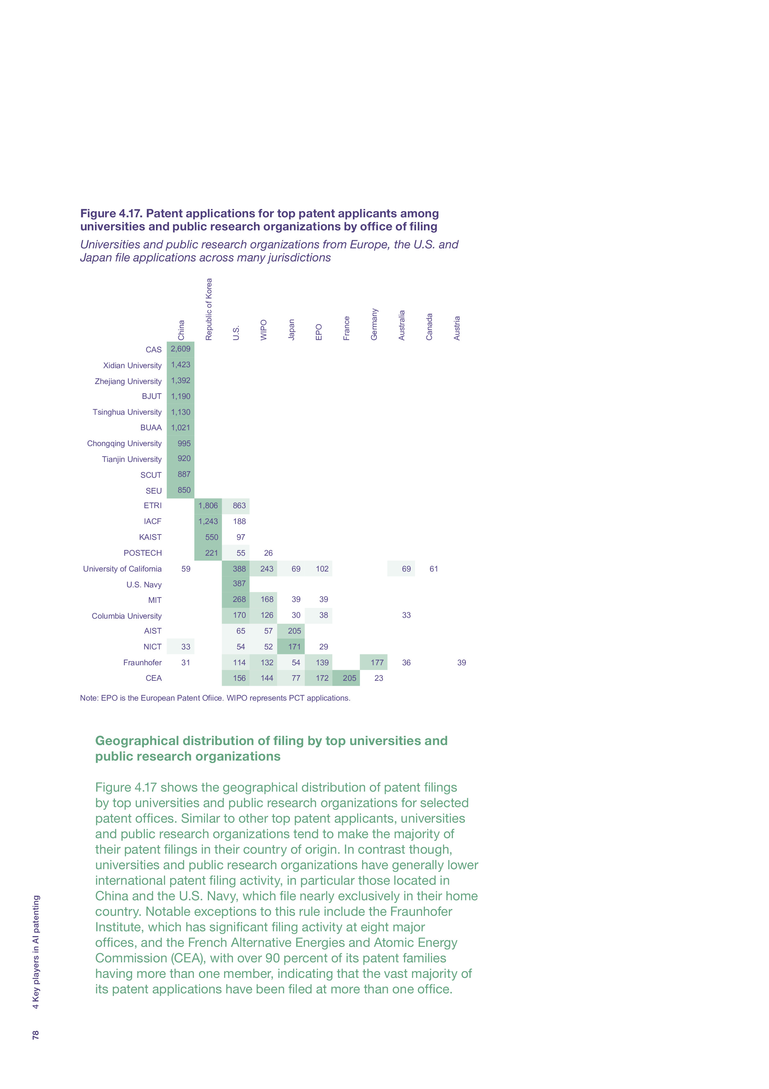 自20世纪50年代人工智能出现以来,创新者和研究人员已经提交了近34万项与人工智能相关的发明申请,出版了160多万份科技出版物。特别是来自日本、美国和中国的公司,在专利活动中占主导地位。