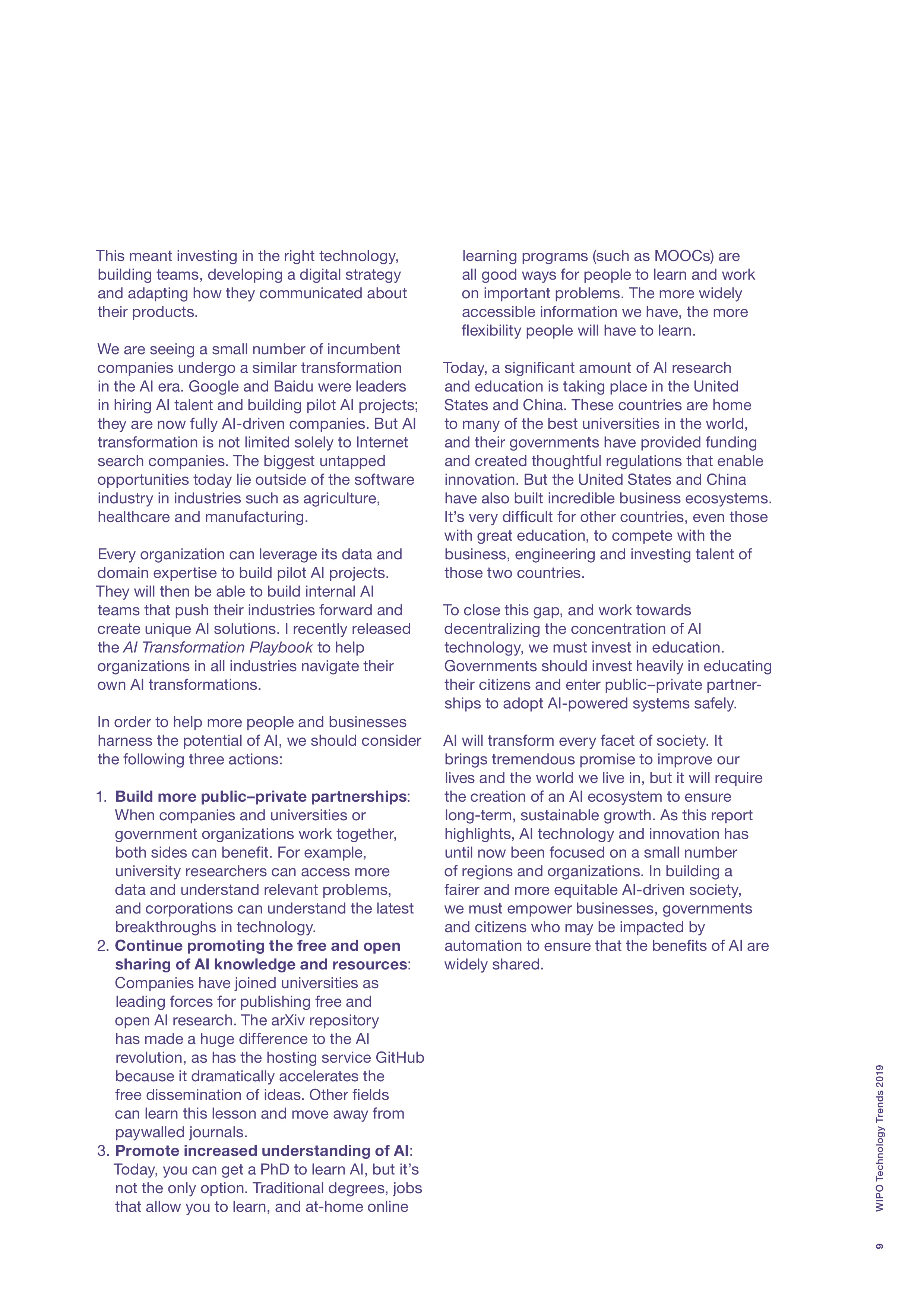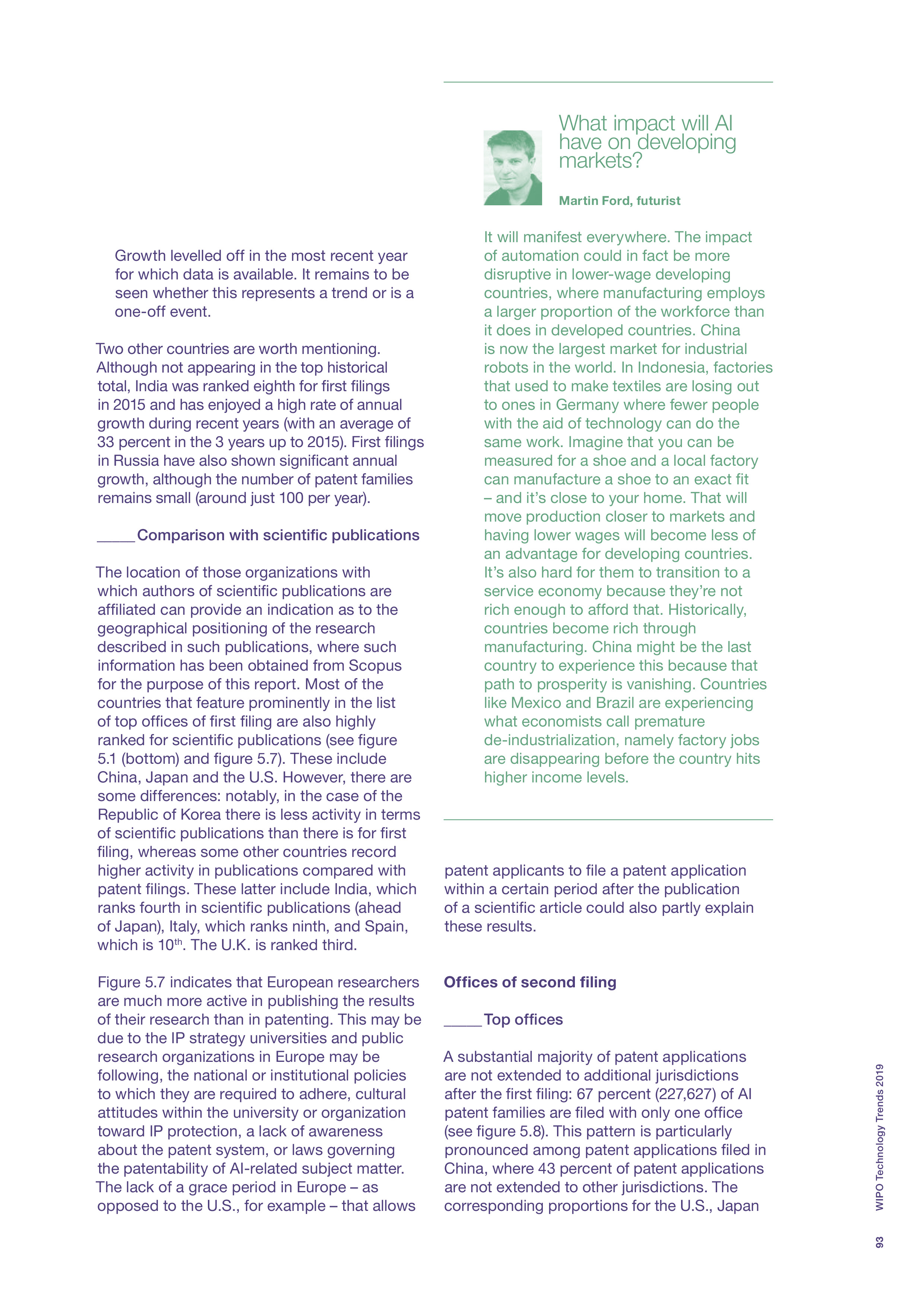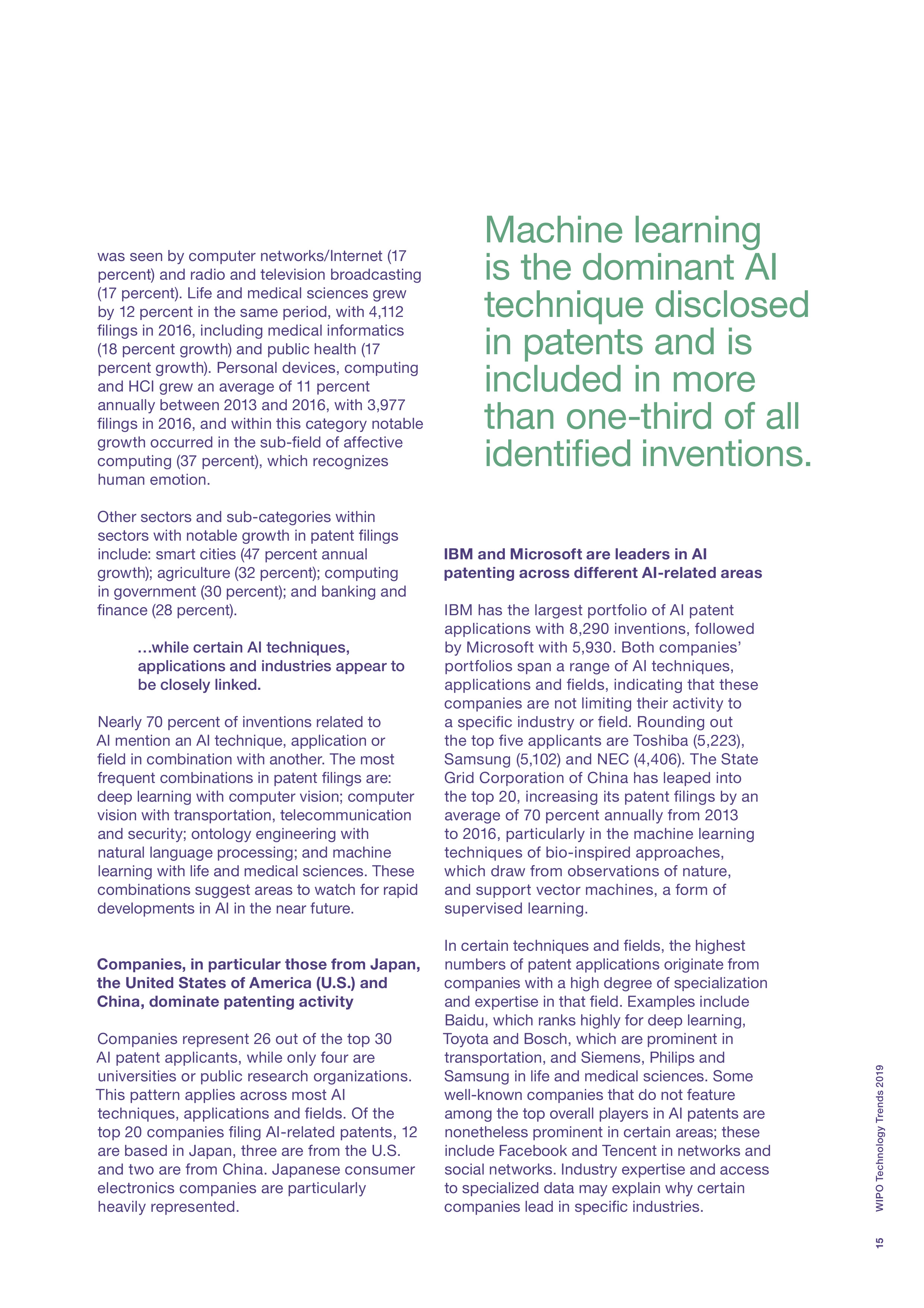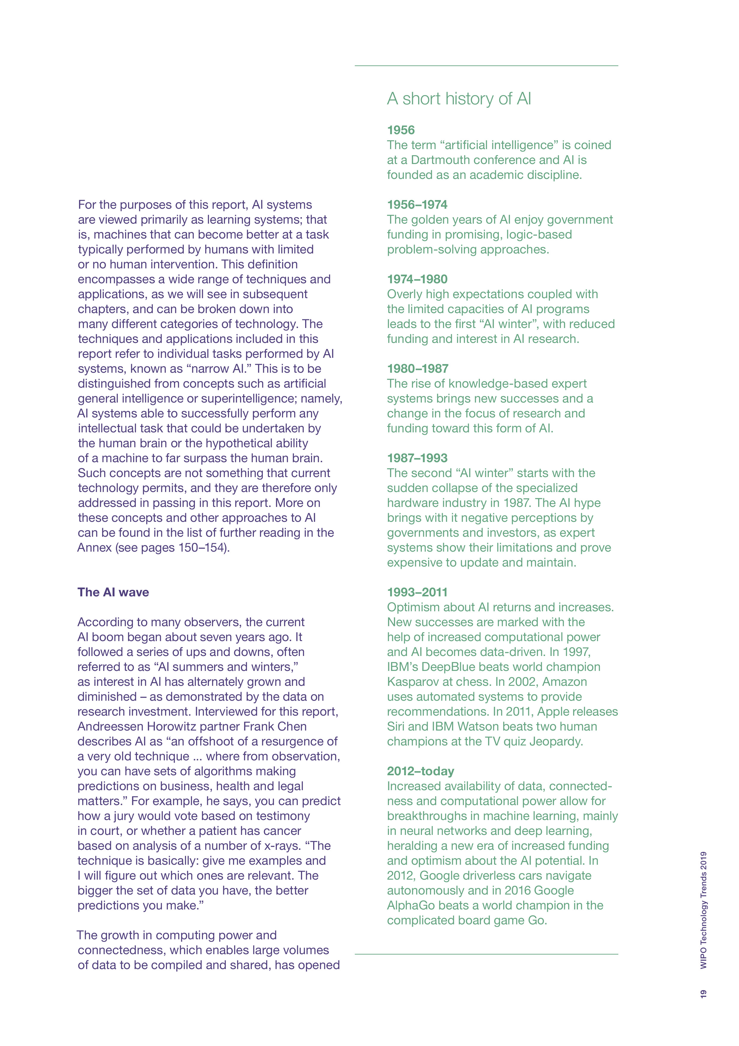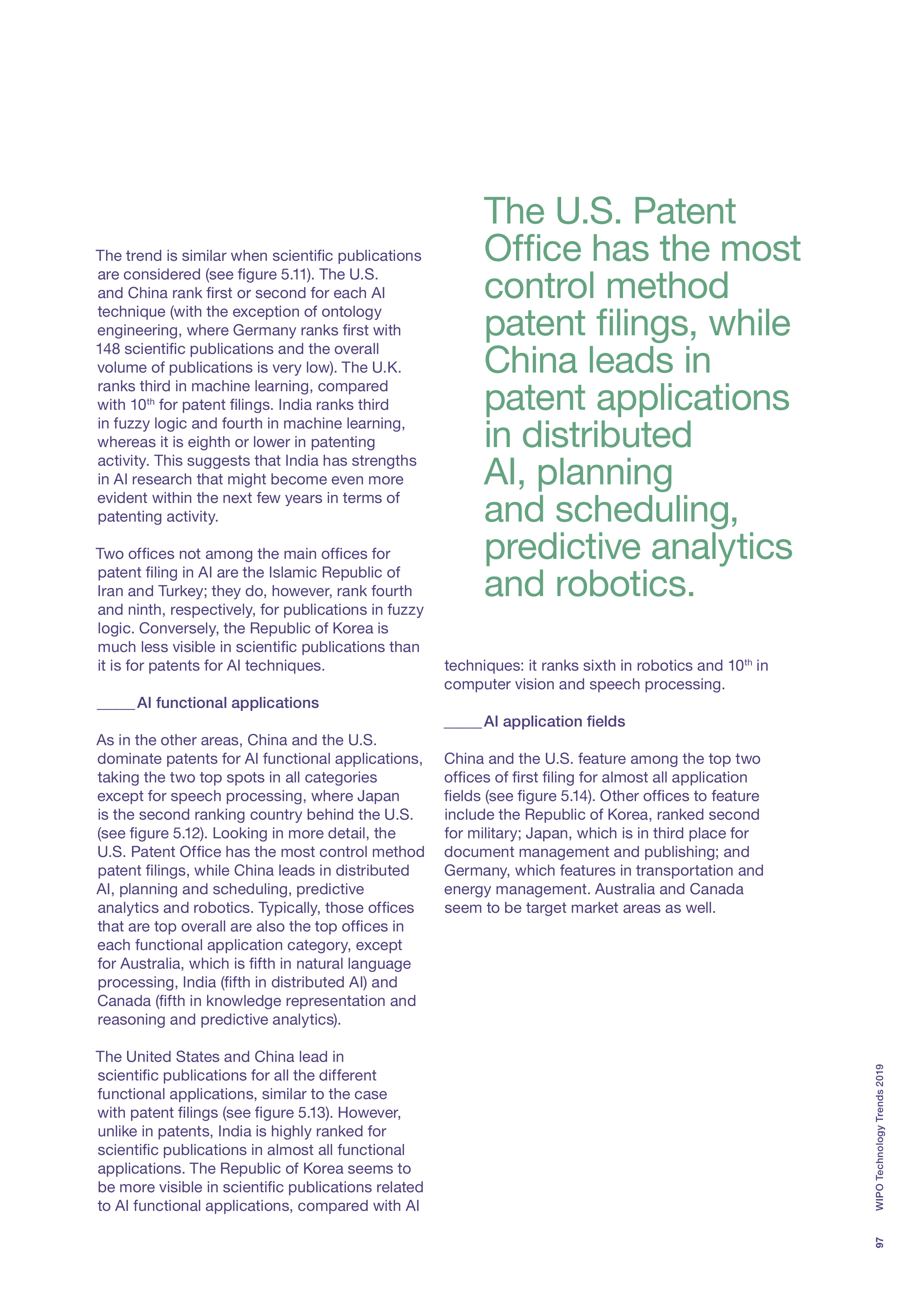 自20世纪50年代人工智能出现以来,创新者和研究人员已经提交了近34万项与人工智能相关的发明申请,出版了160多万份科技出版物。特别是来自日本、美国和中国的公司,在专利活动中占主导地位。