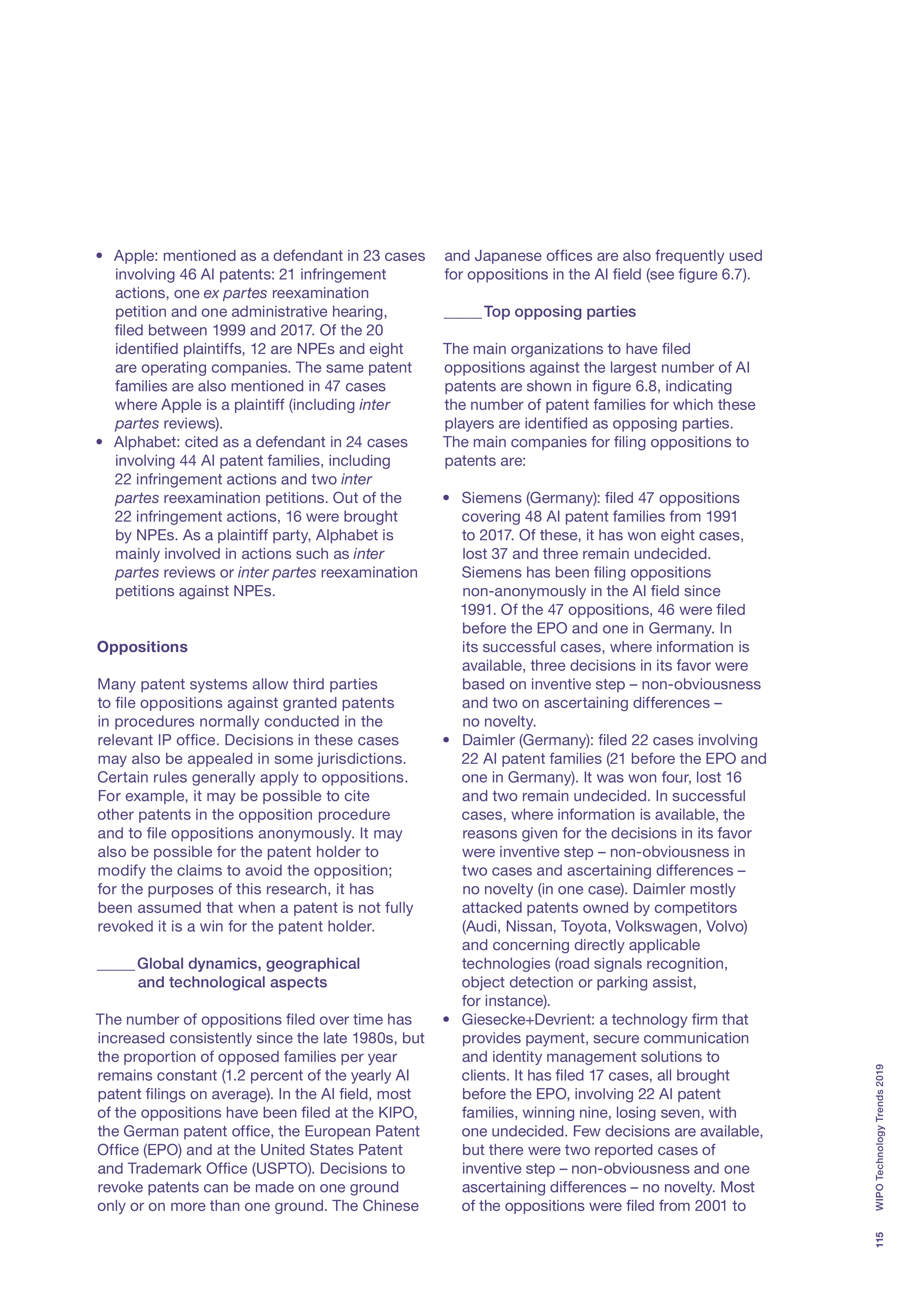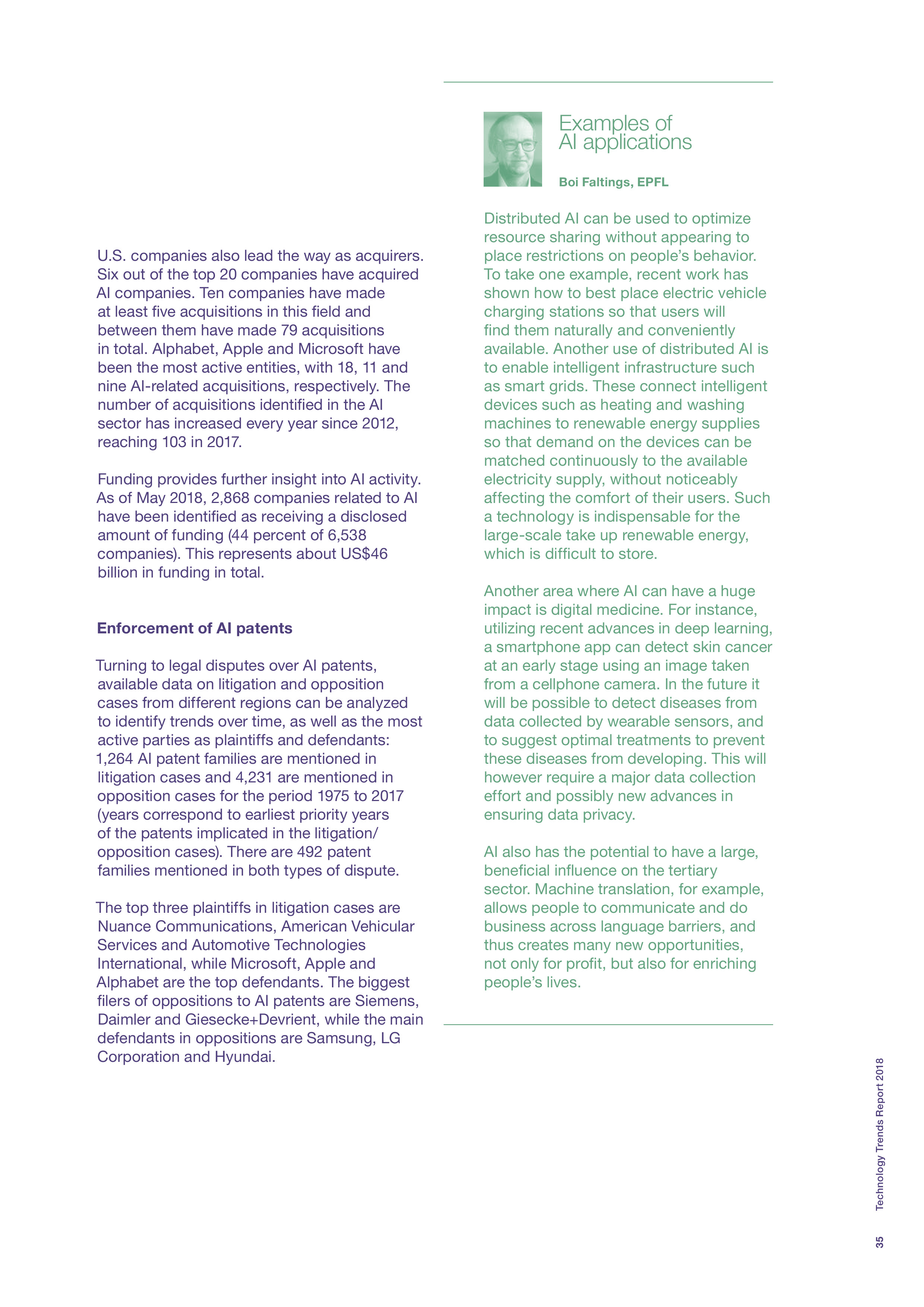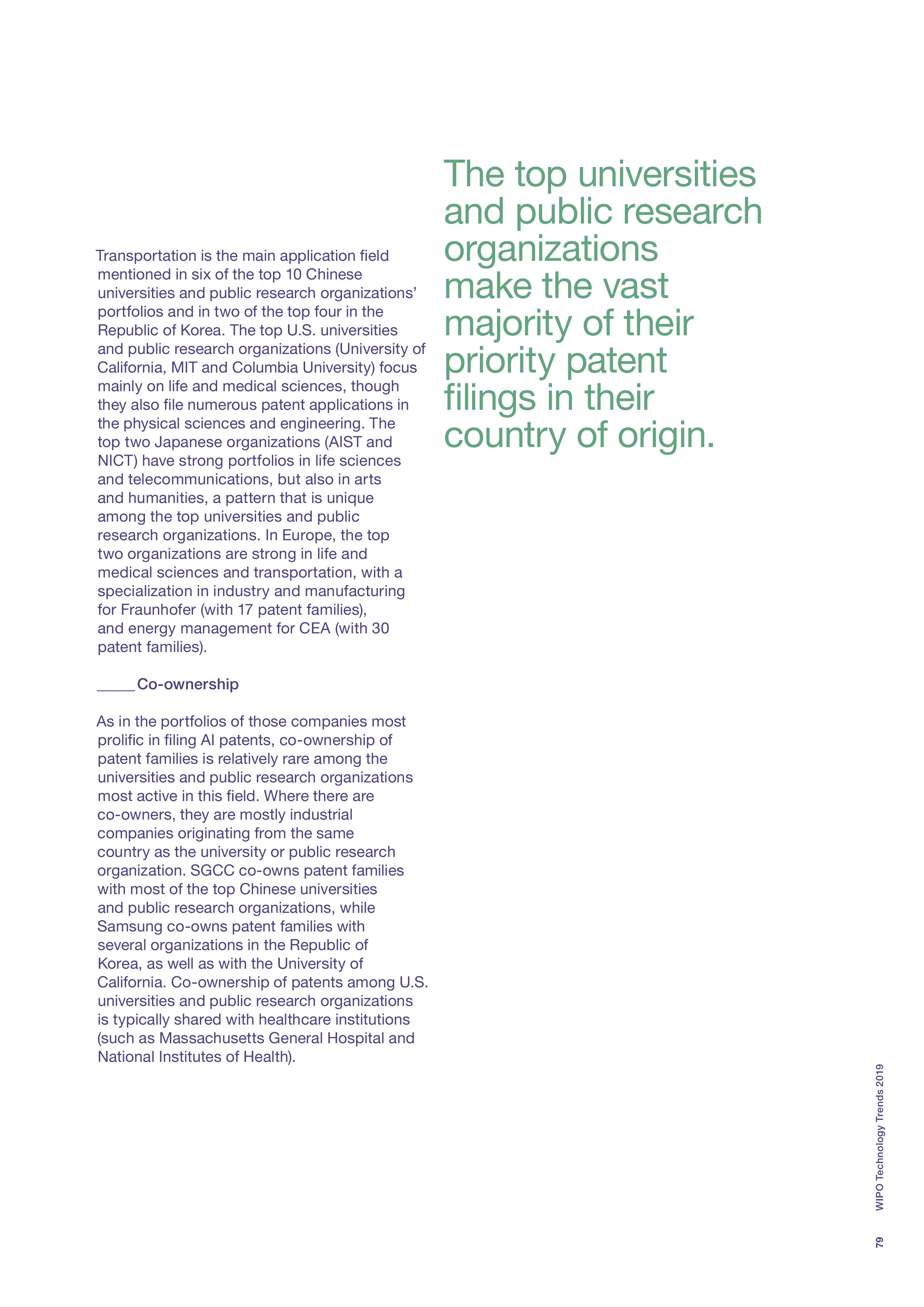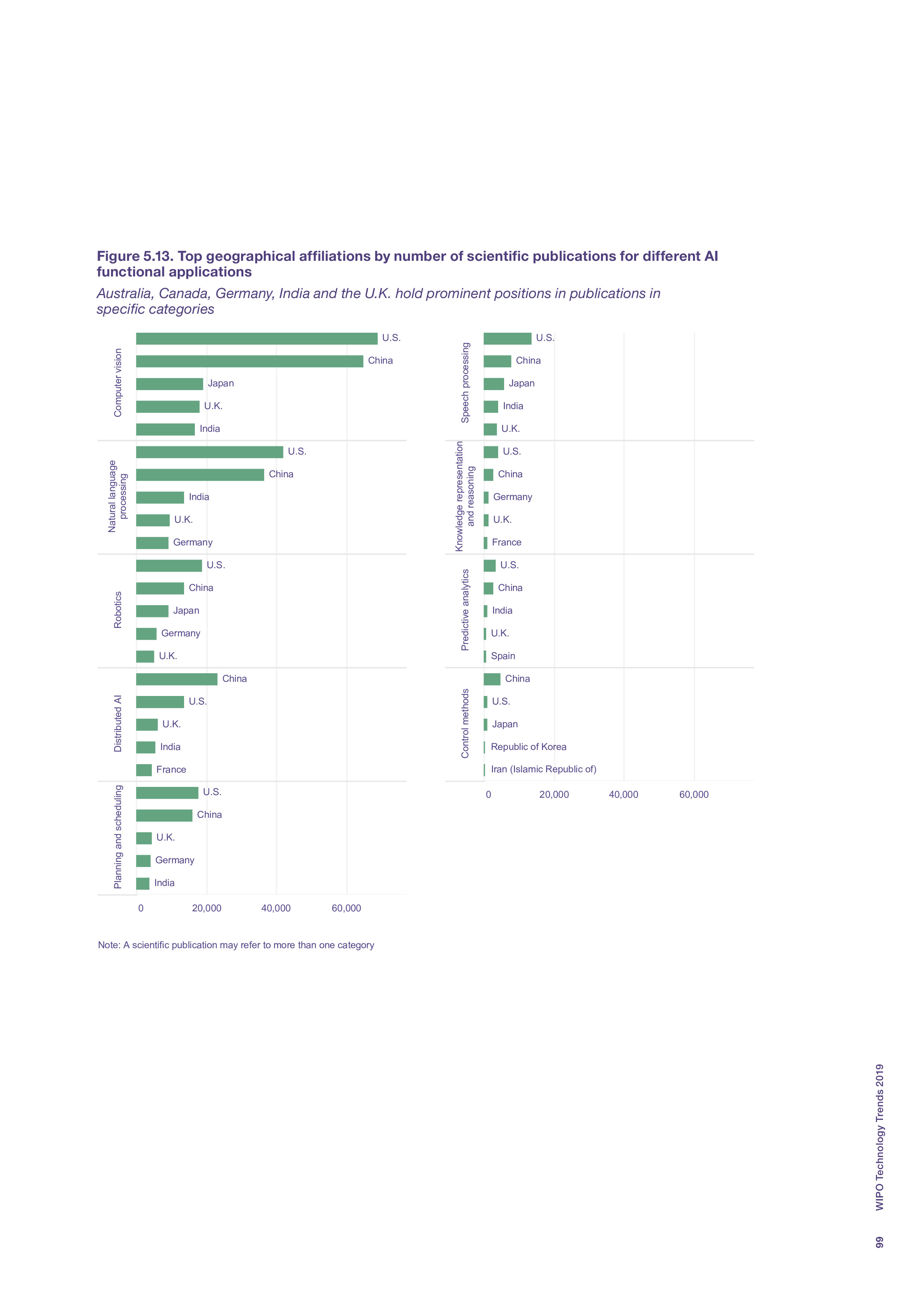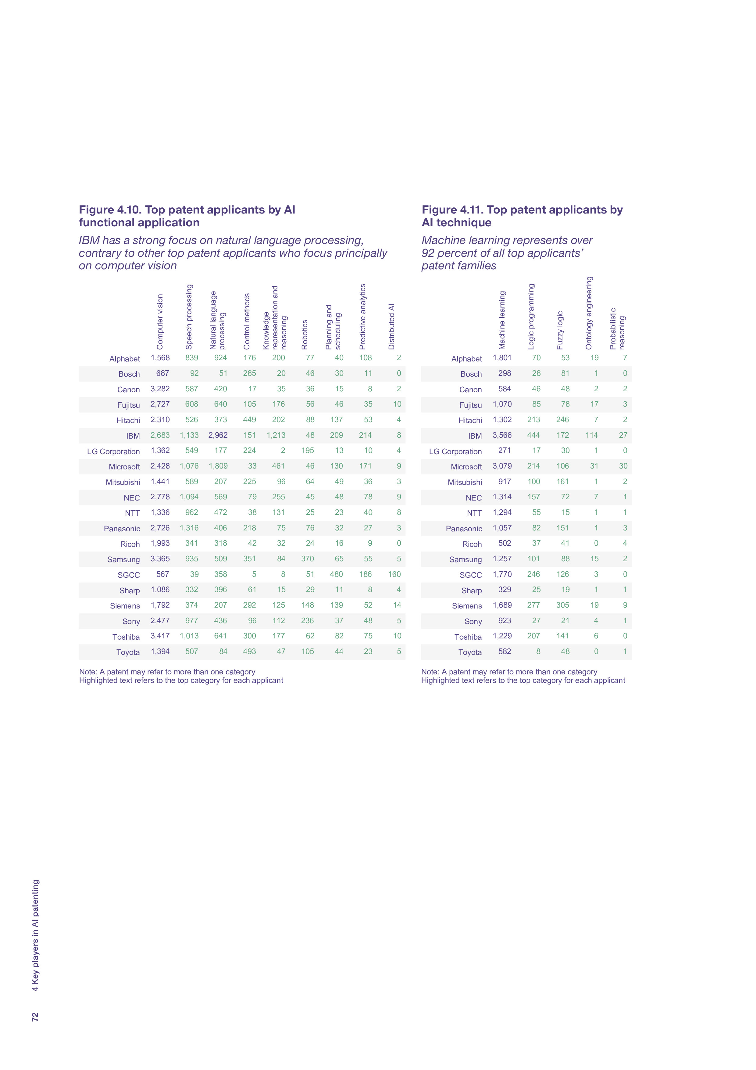 在前30位人工智能专利申请人中,有26家是公司,只有4家是大学或公共研究机构。拥有人工智能相关专利最多的20家公司中有12家位于日本,3家来自美国,2家来自中国。