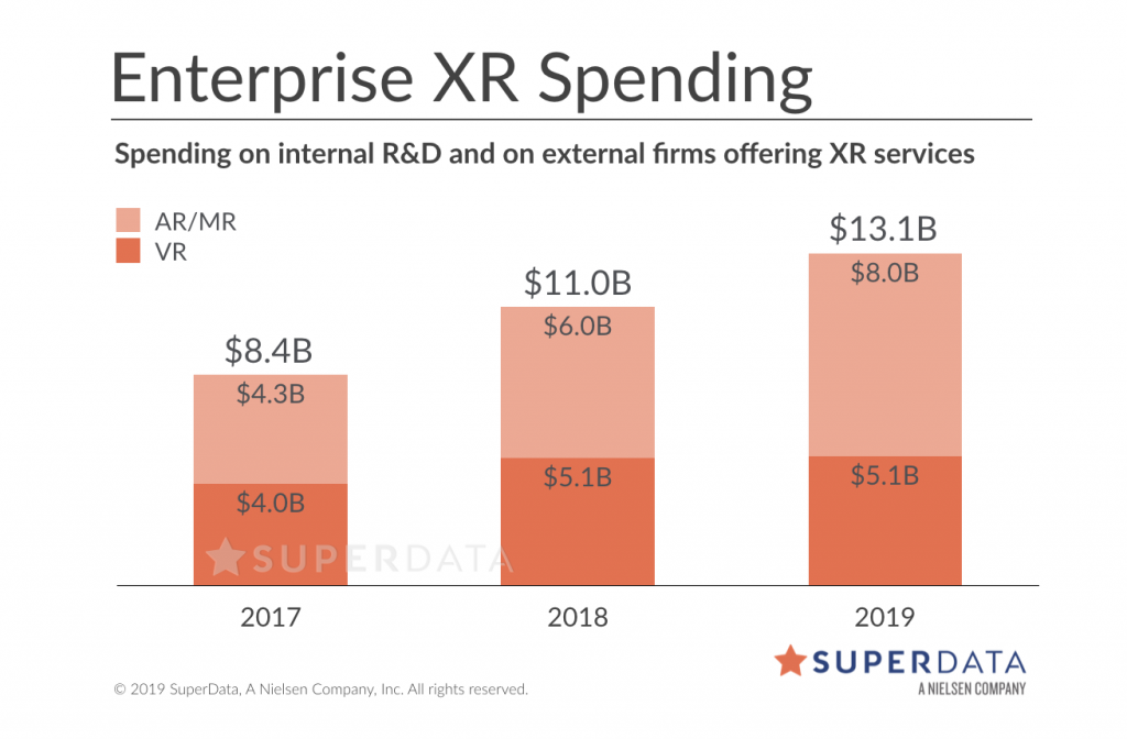 根据SuperData的最新数据,使用扩展现实(XR)培训的公司预计将在2019年节省135亿美元。